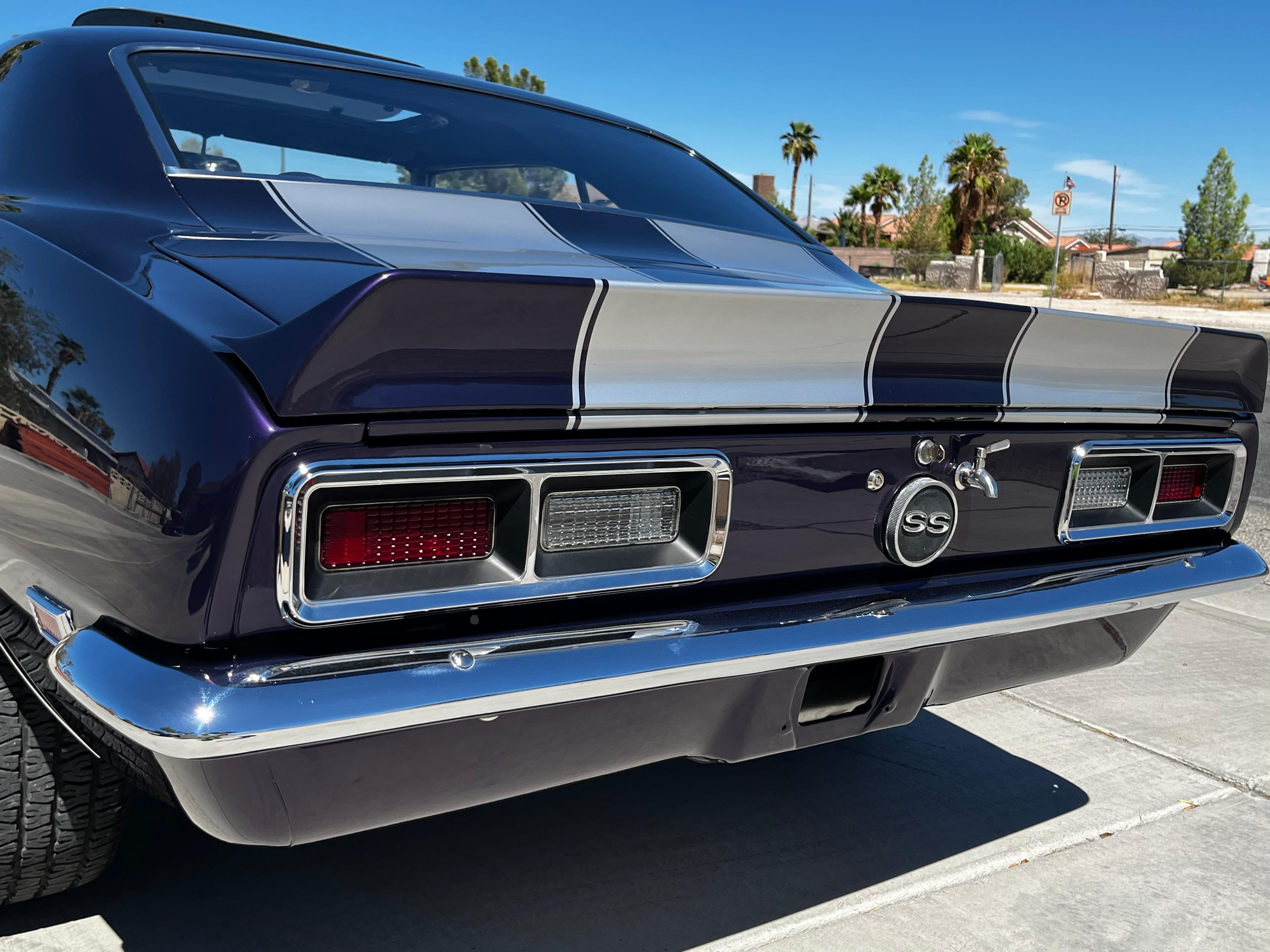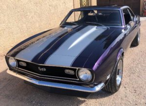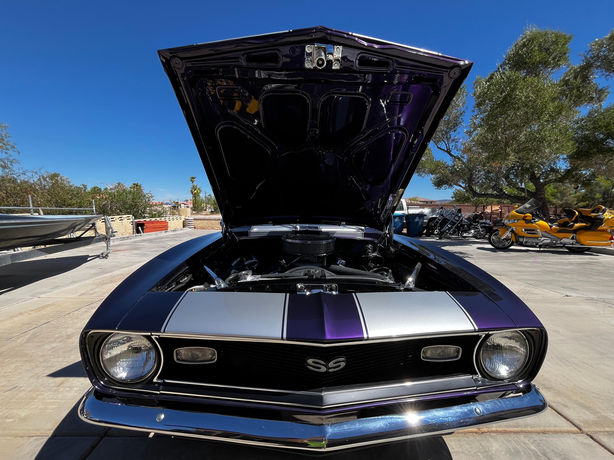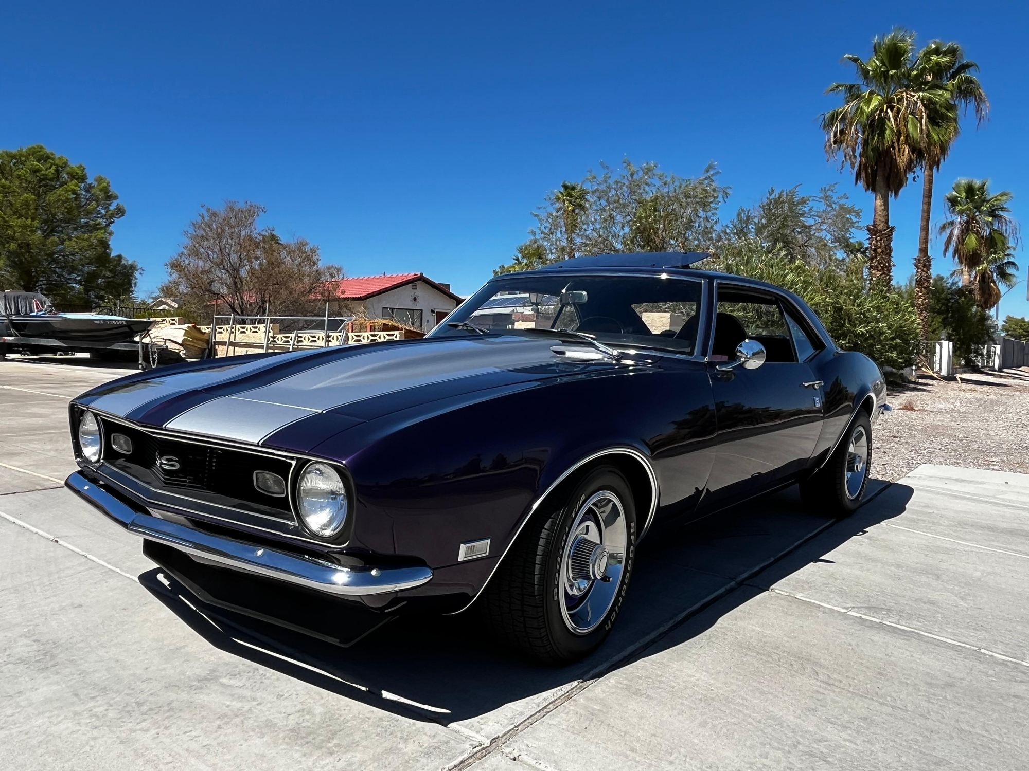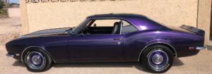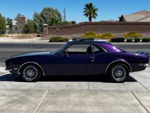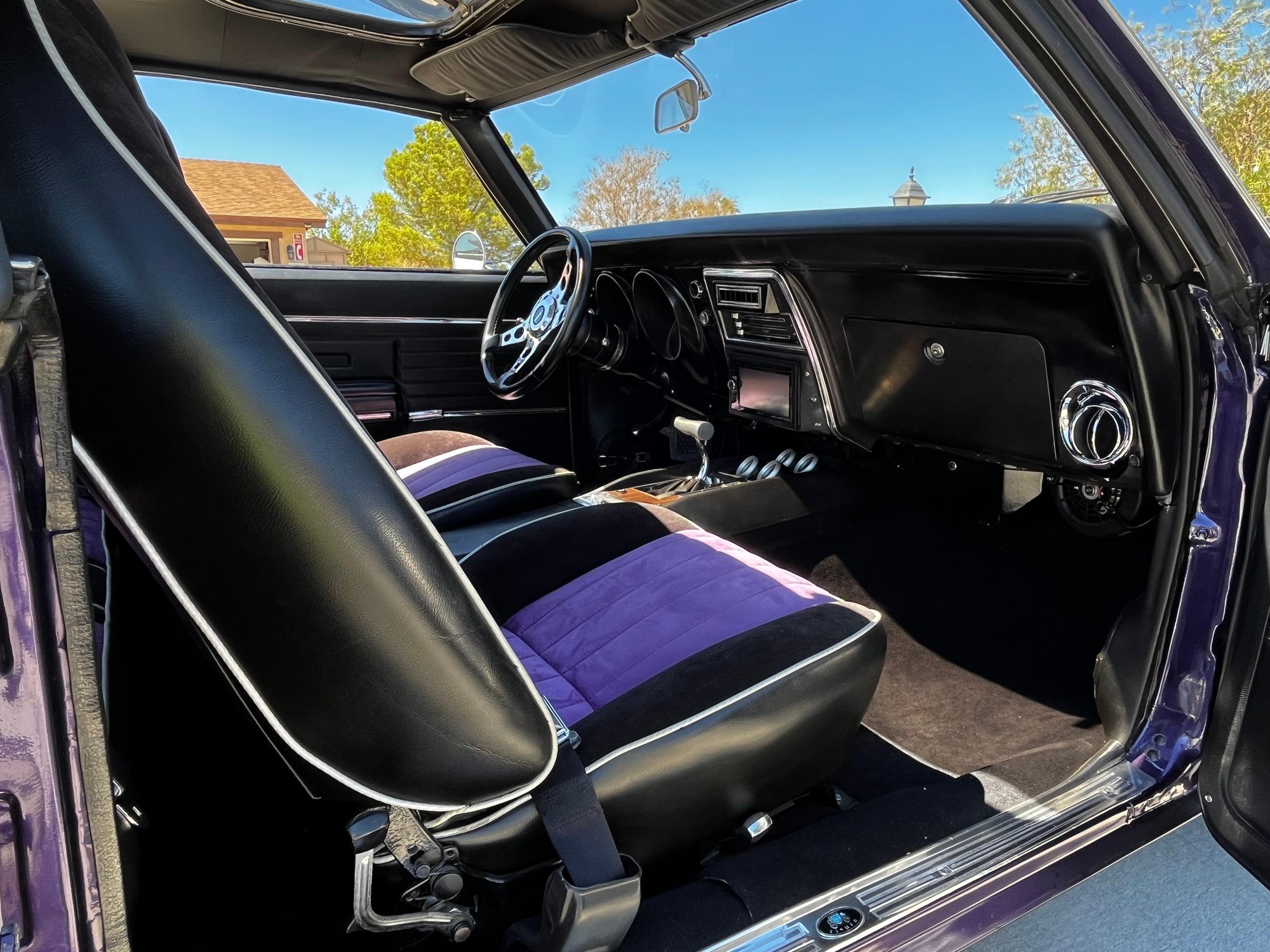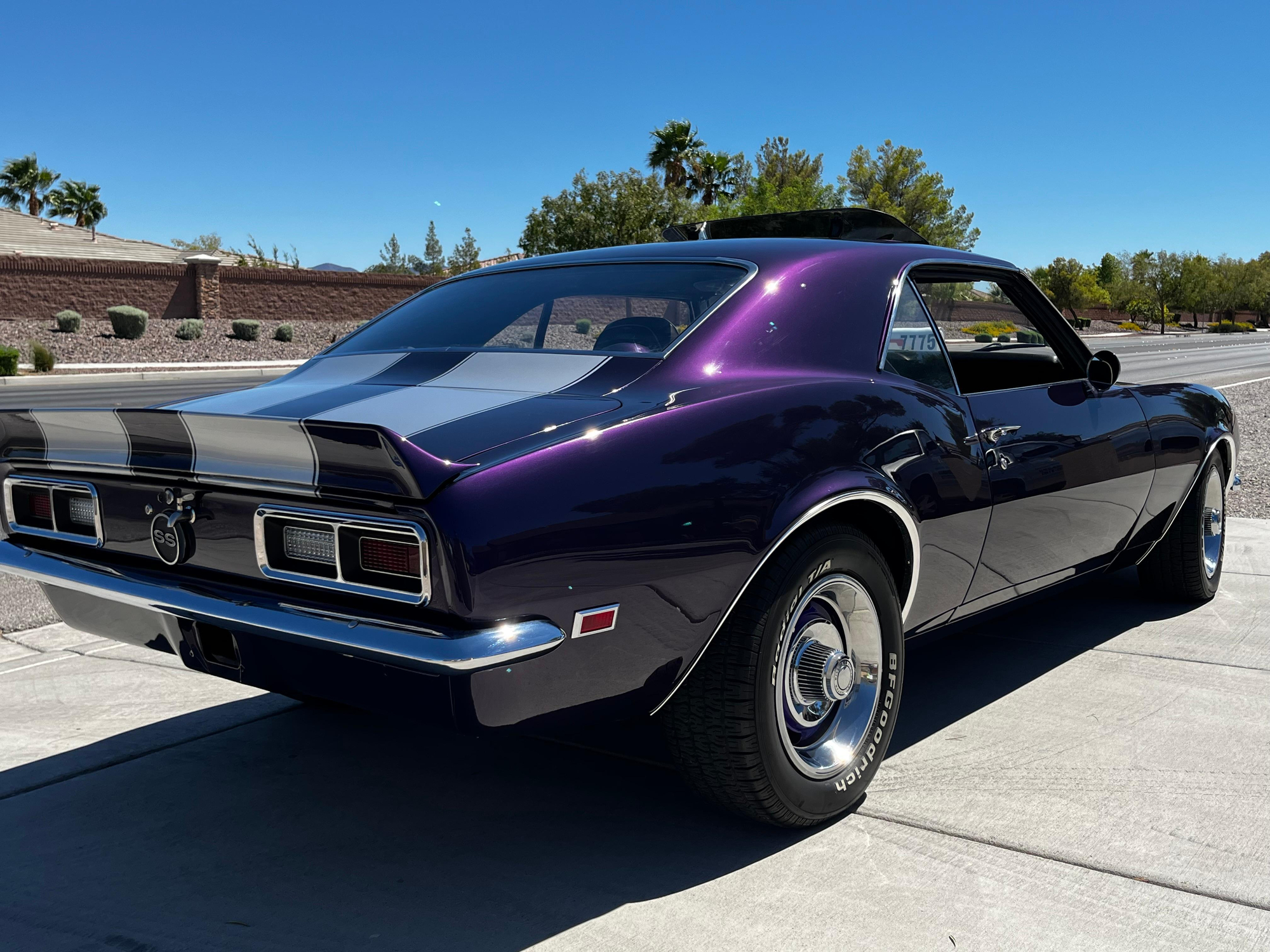– THIS… is a 1968 Chevrolet Camaro Coupe, finished in purple and silver with a black and purple interior.