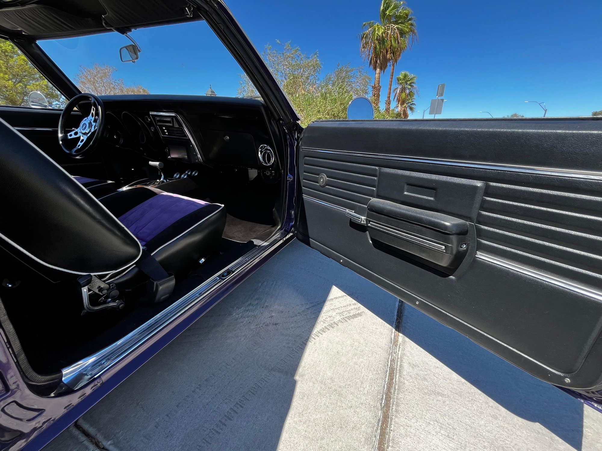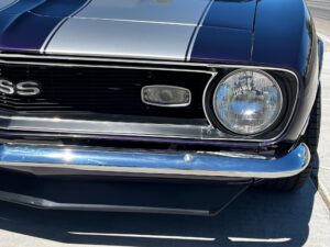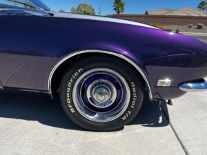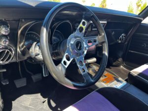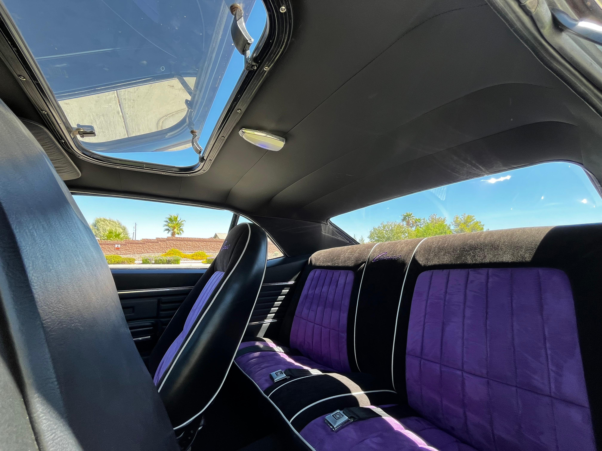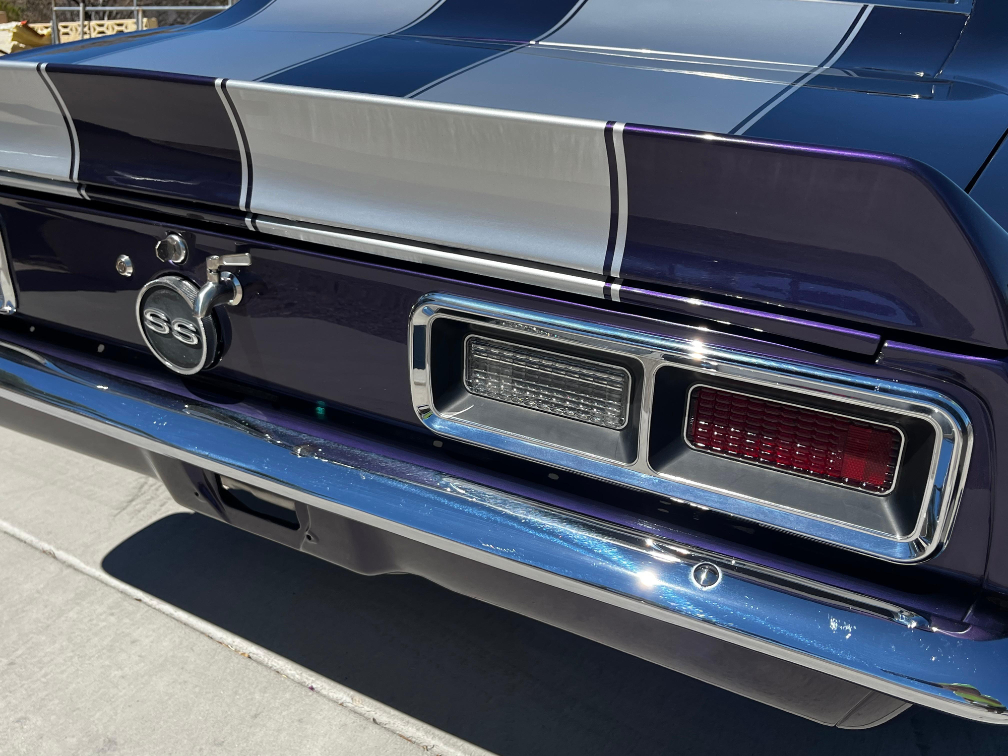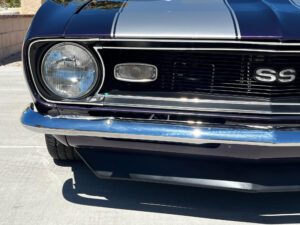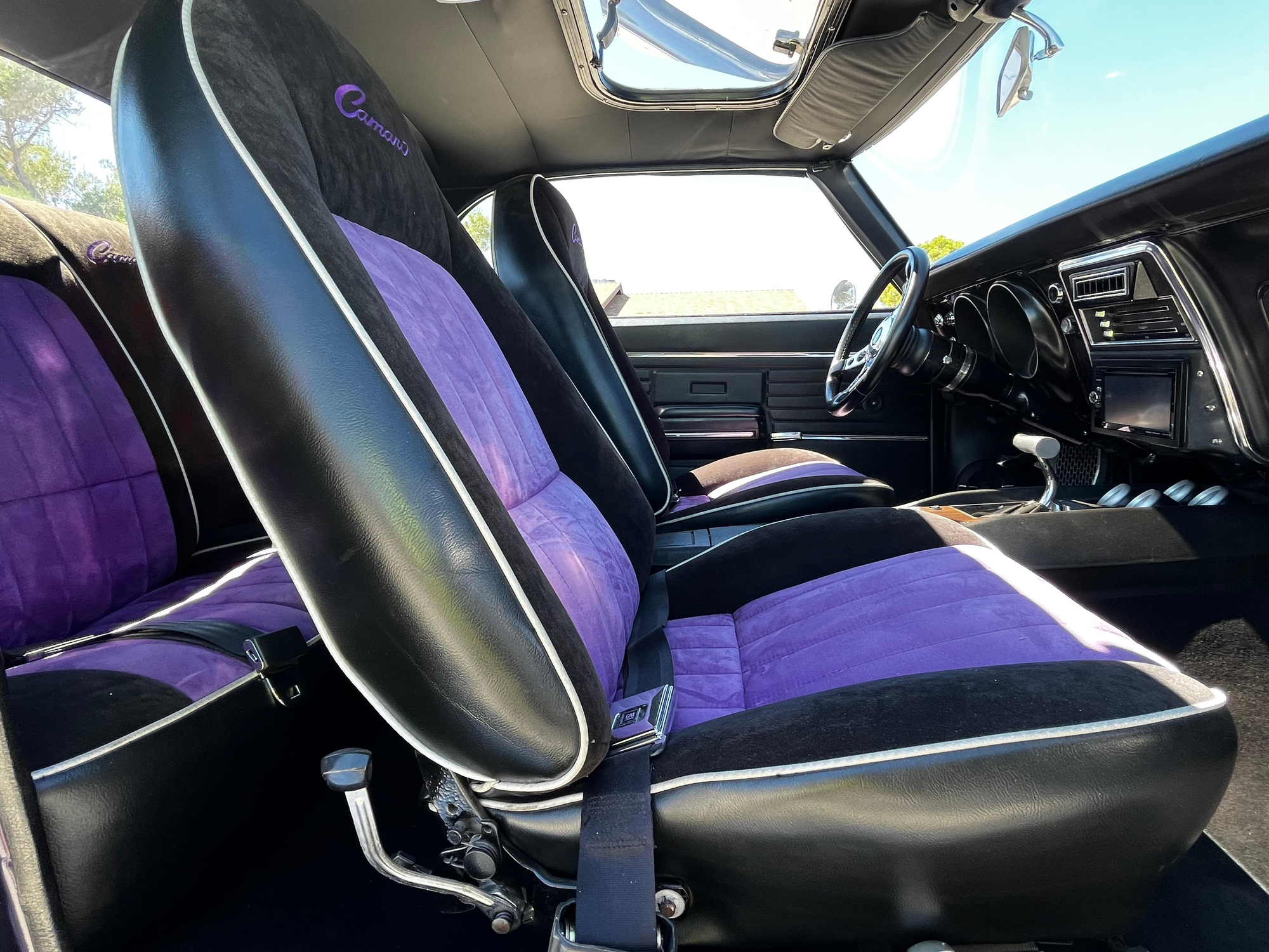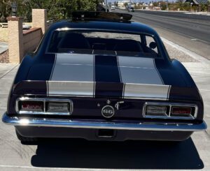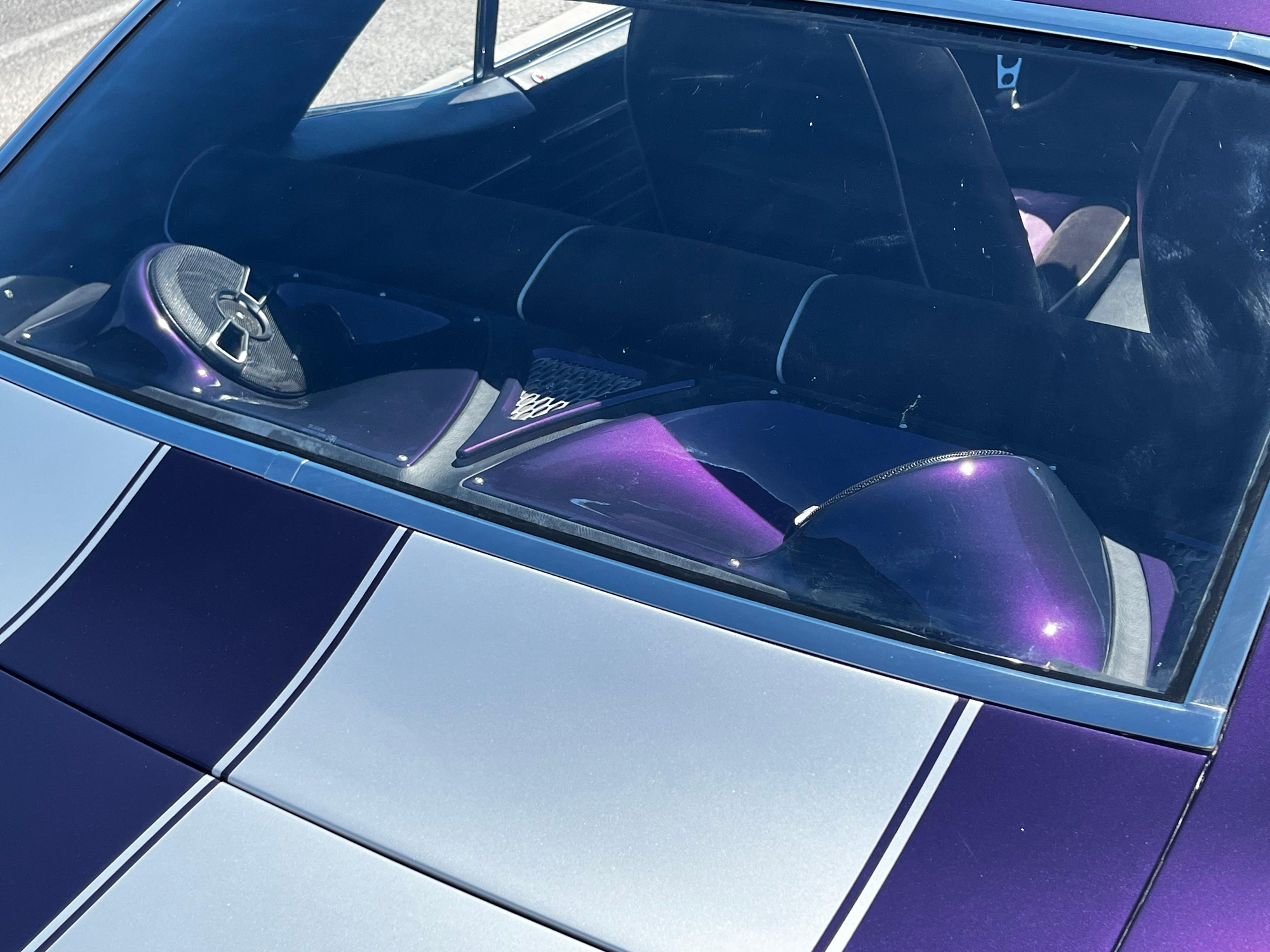 – THIS… is a 1968 Chevrolet Camaro Coupe, finished in purple and silver with a black and purple interior.