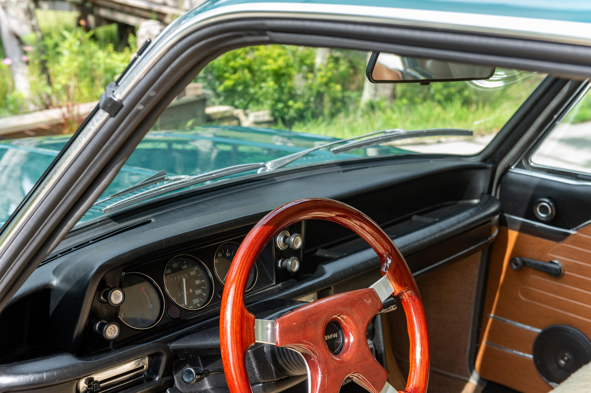 – Wood-rimmed steering wheel