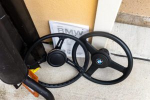 – A partial list of notable currently installed equipment reported by the seller includes a Pertronix electronic ignition system, an Ansa exhaust system, 13-inch Euro-spec BMW wheels, and a wood-rimmed steering wheel. Some of the removed factory parts are shown in the gallery and included in the sale.