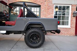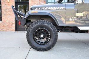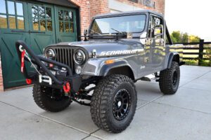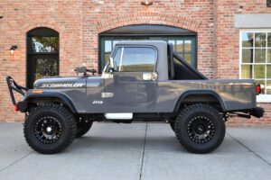 – The Jeep CJ-8 Scrambler is a cool retro off-roader that touts old-school Jeep capabilities and a compact pickup body for added utility. This Scrambler has been extensively restored and modernized – and it now boasts a 387-cubic-inch V8, a handsome new paint job, an updated interior, and many more touches intended to improve both the livability and the off-road performance. Whether you plan on hitting the trails or just driving around town, this looks like a fantastic classic Jeep, and I’m proud to offer it here on Cars & Bids.