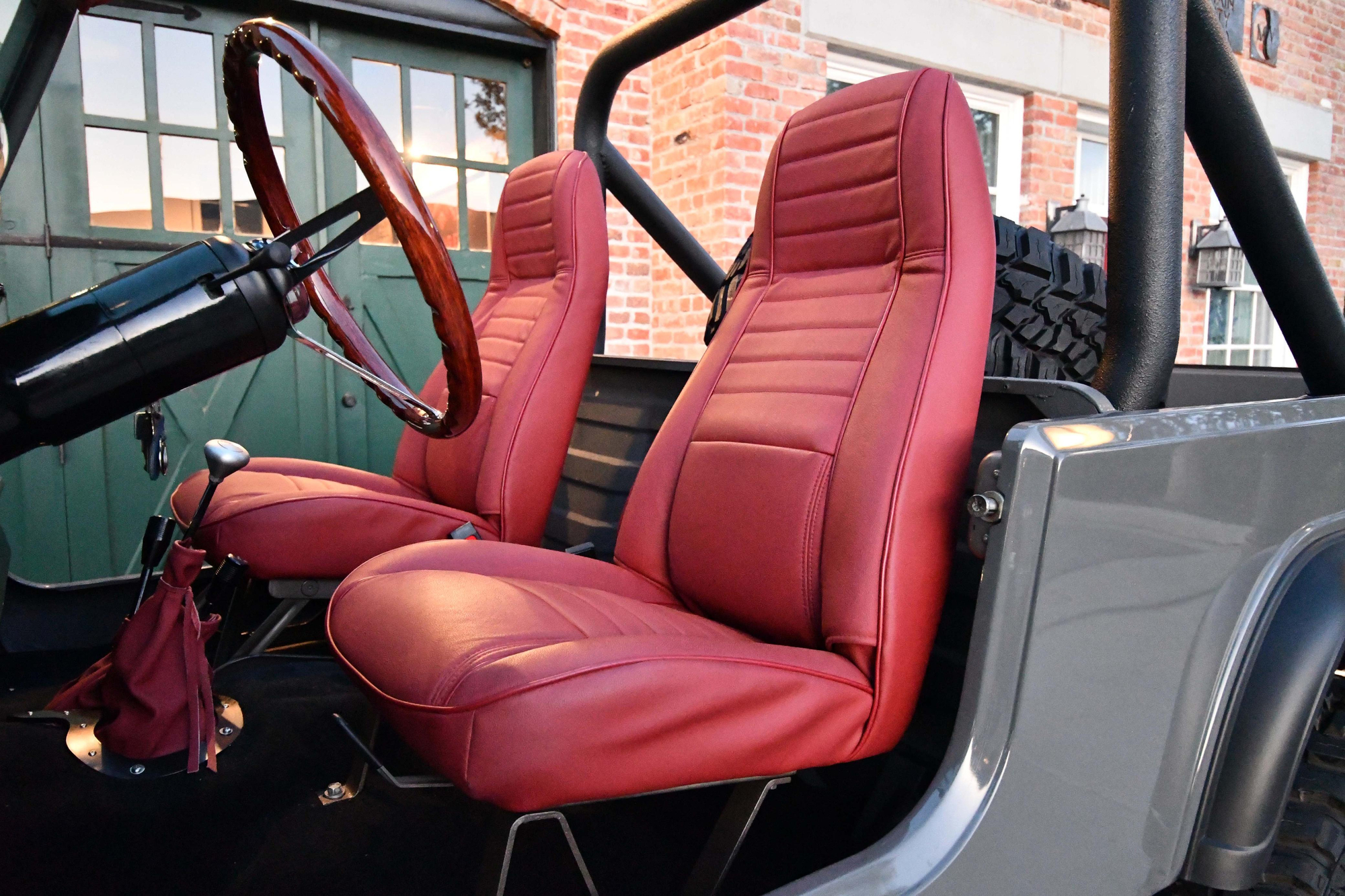 – THIS… is a 1981 Jeep CJ-8 Scrambler, finished in gray with a red interior.