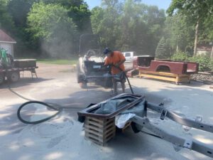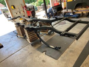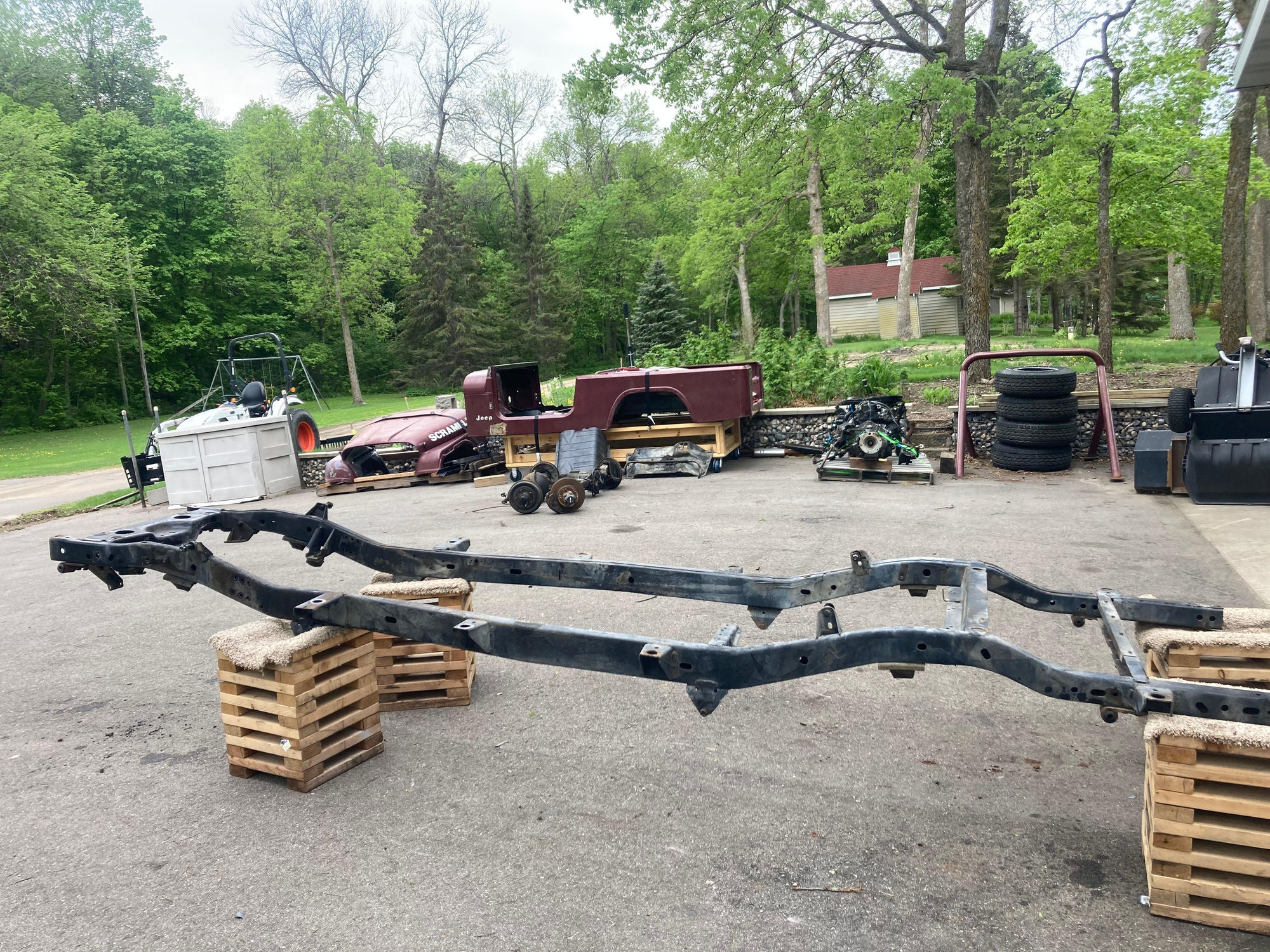 – The selling dealer states that this CJ-8 recently received a frame-off restoration, and photos of the restoration process are pictured in the “Other” section of the gallery. The work performed during the restoration reportedly includes installing a new engine and a new transmission, installing the equipment detailed above, refinishing the chassis, and repainting the body.