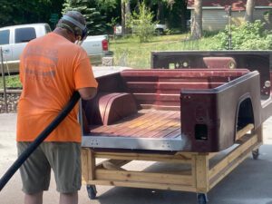 – This truck was recently restored, according to the selling dealer, and pictures reportedly taken during the restoration are included in the gallery. The factory-fitted engine was replaced by a 383-cubic-inch V8 during the restoration. The list of modifications reported by the selling dealer also includes an aluminum radiator, a Holley Sniper electronic fuel injection system, FOX Factory shocks, 35-inch Mickey Thompson Baja Boss tires, a WARN Industries Zeon 10 winch, and aftermarket upholstery.