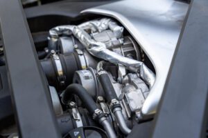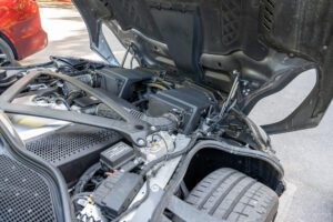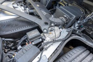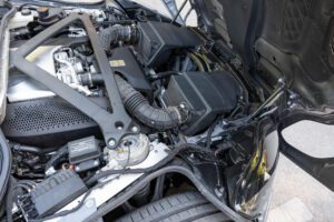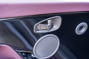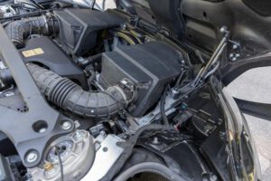 – Power comes from an AMG-sourced 4.0-liter twin-turbocharged V8, rated at 503 horsepower and 498 lb-ft of torque. Output is sent to the rear wheels via an 8-speed automatic transmission.