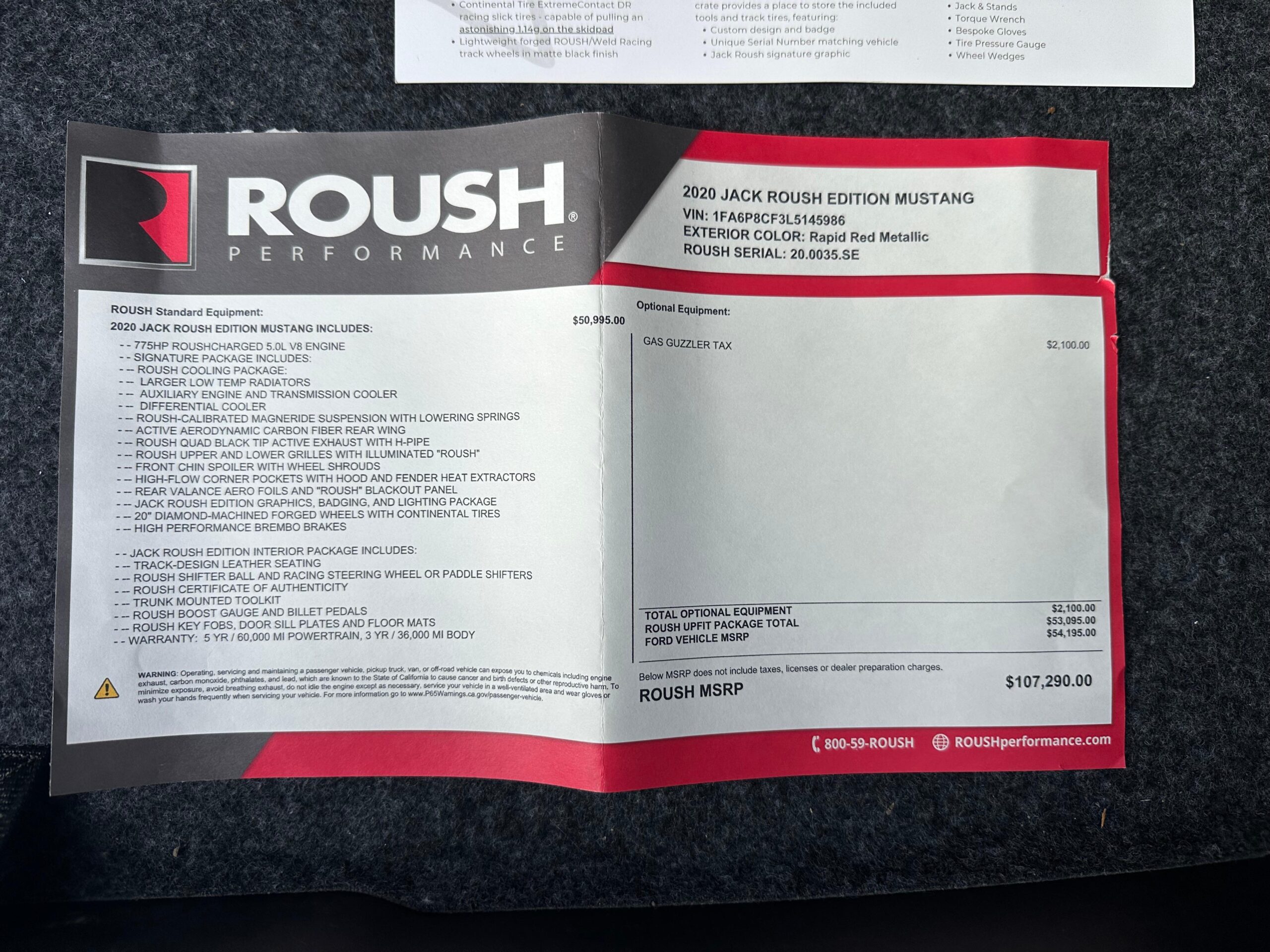 THIS… is a 2020 Ford Mustang Jack Roush Edition, finished in Rapid Red Metallic with an Ebony interior.