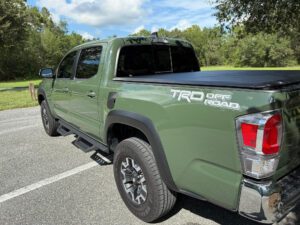 – Notable modifications reported by the seller include aftermarket running boards and a soft bed tonneau cover.