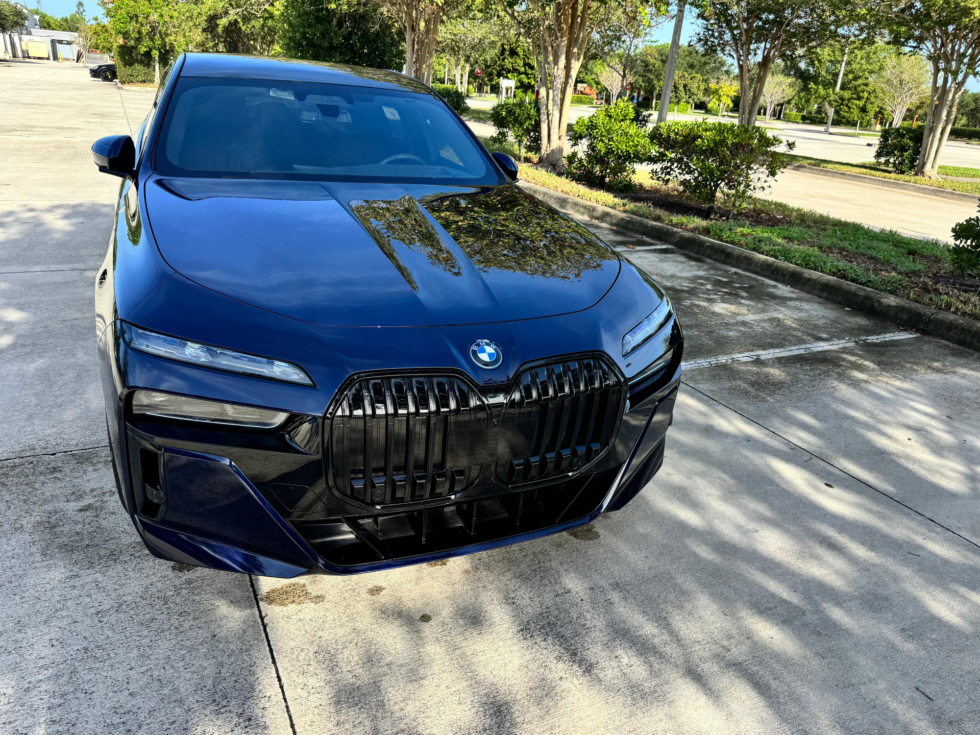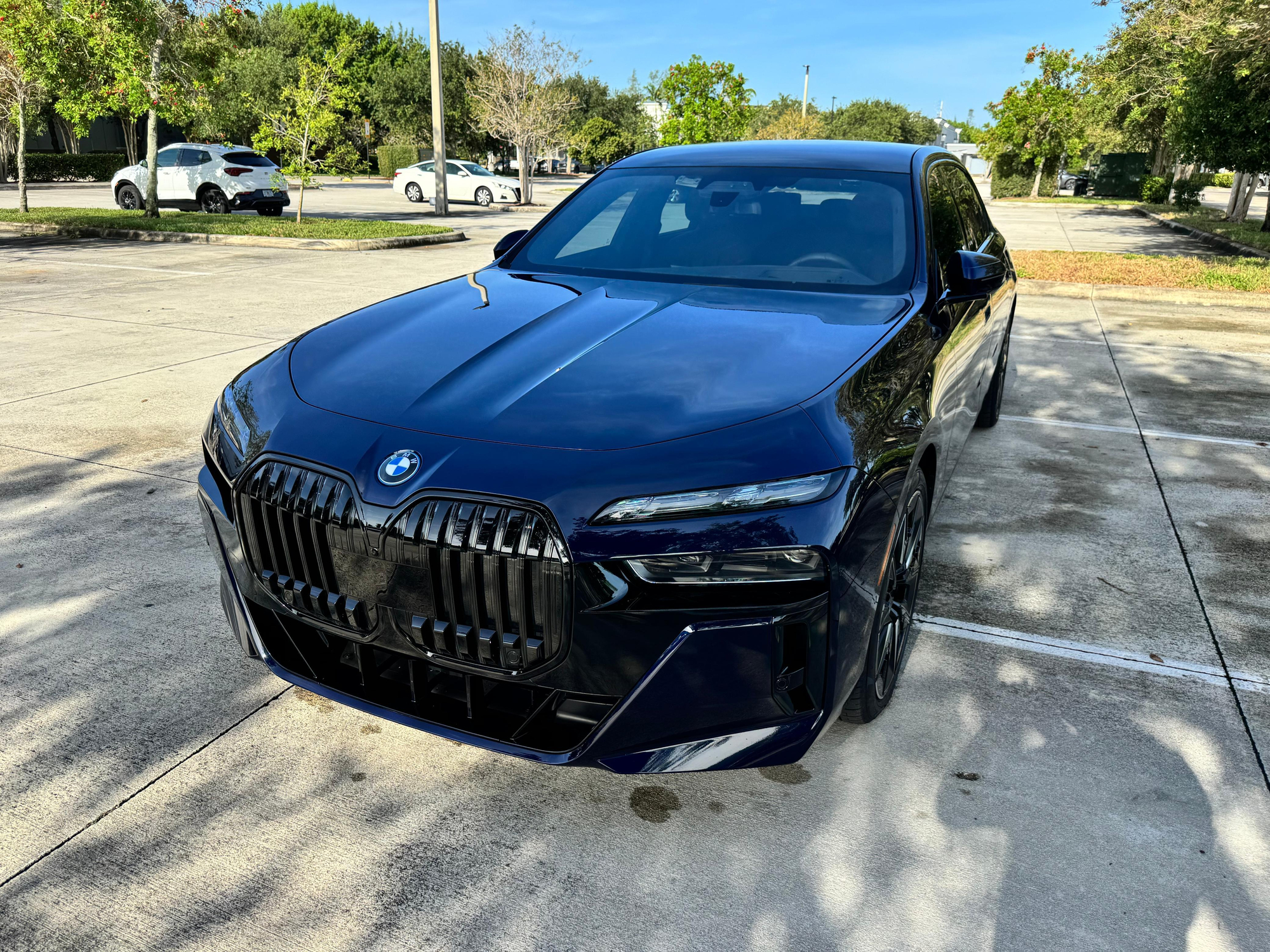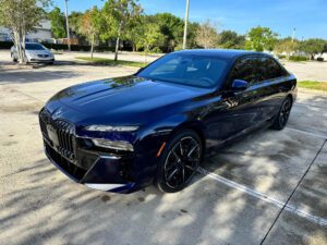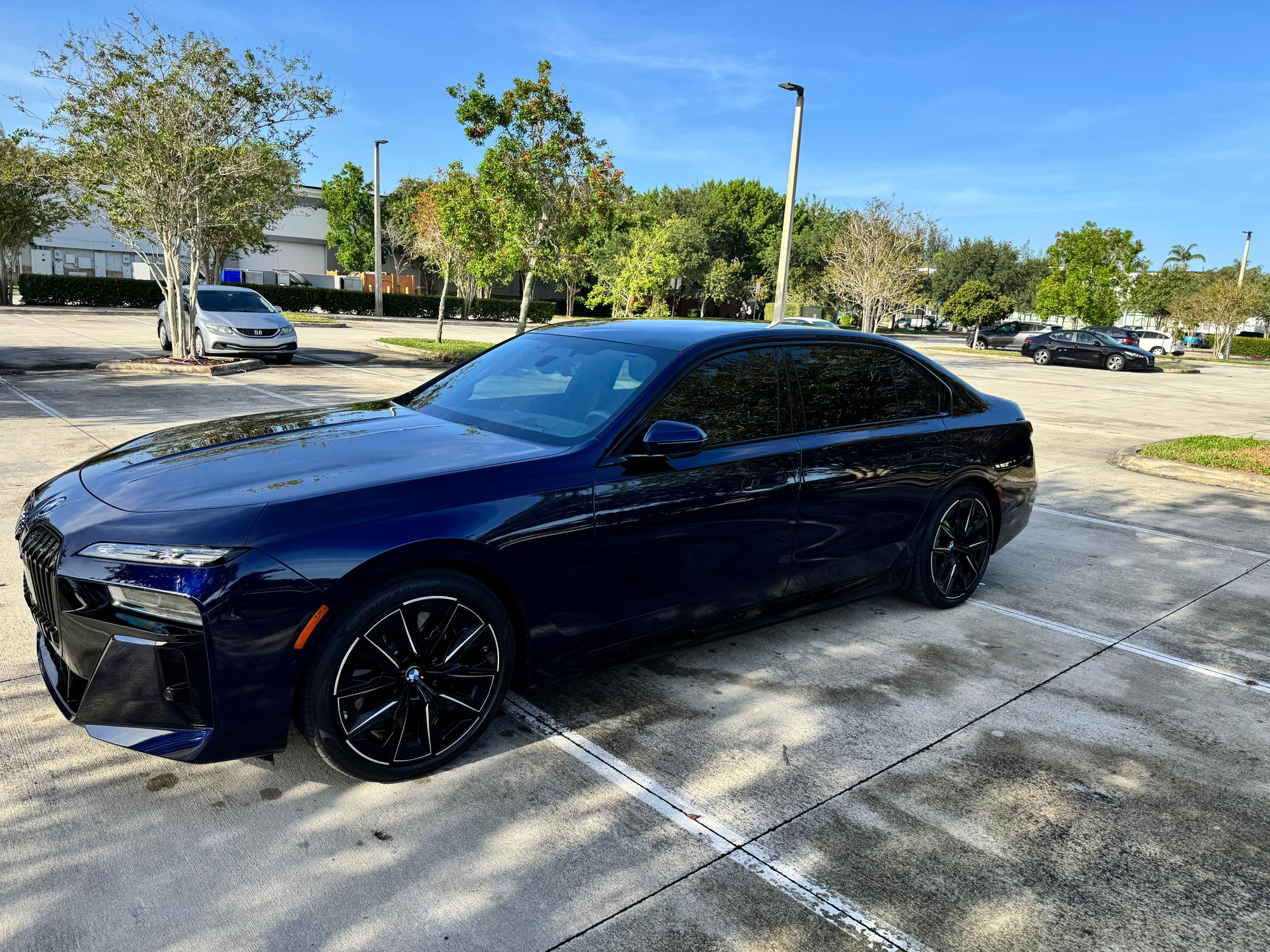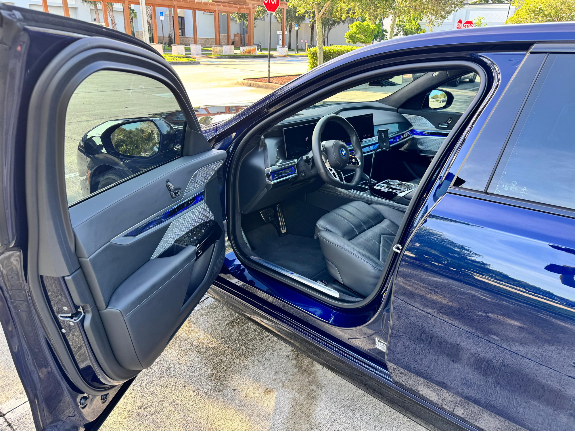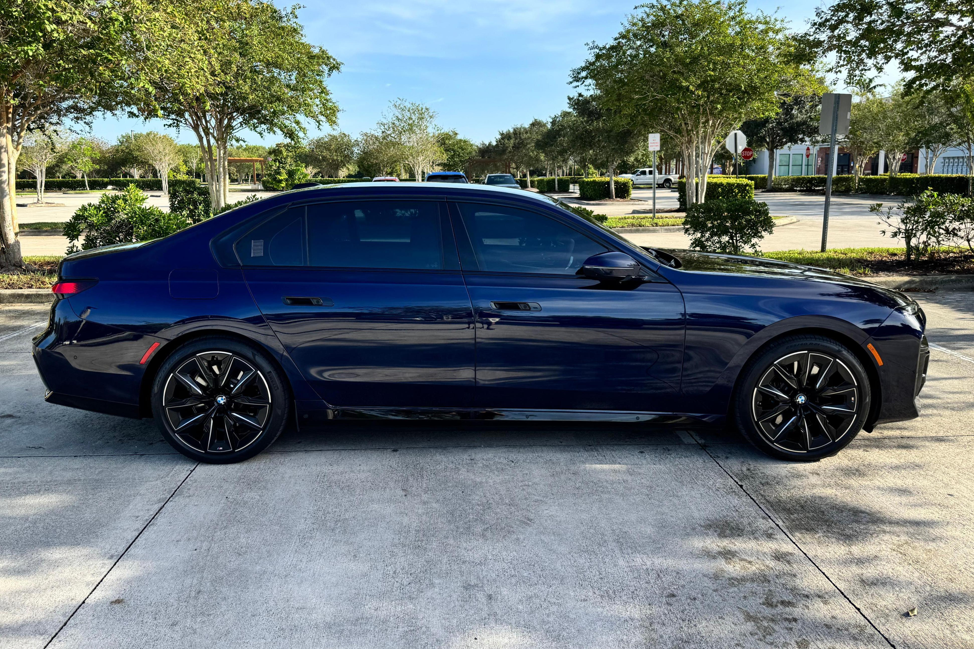 – THIS… is a 2023 BMW i7 xDrive60, finished in Tanzanite Blue II Metallic with a black interior.