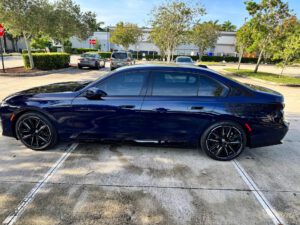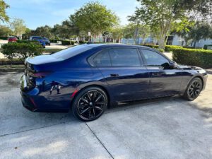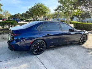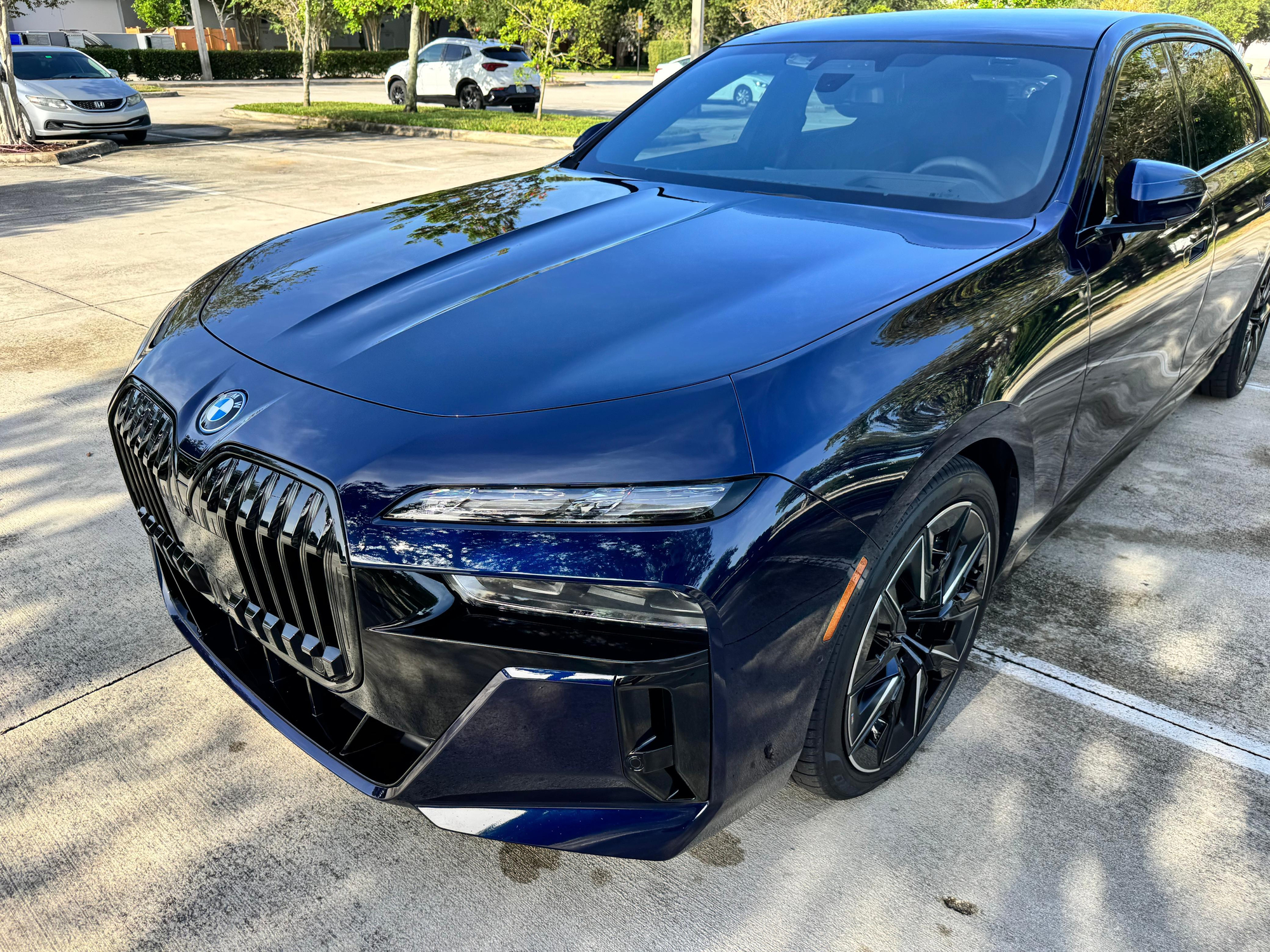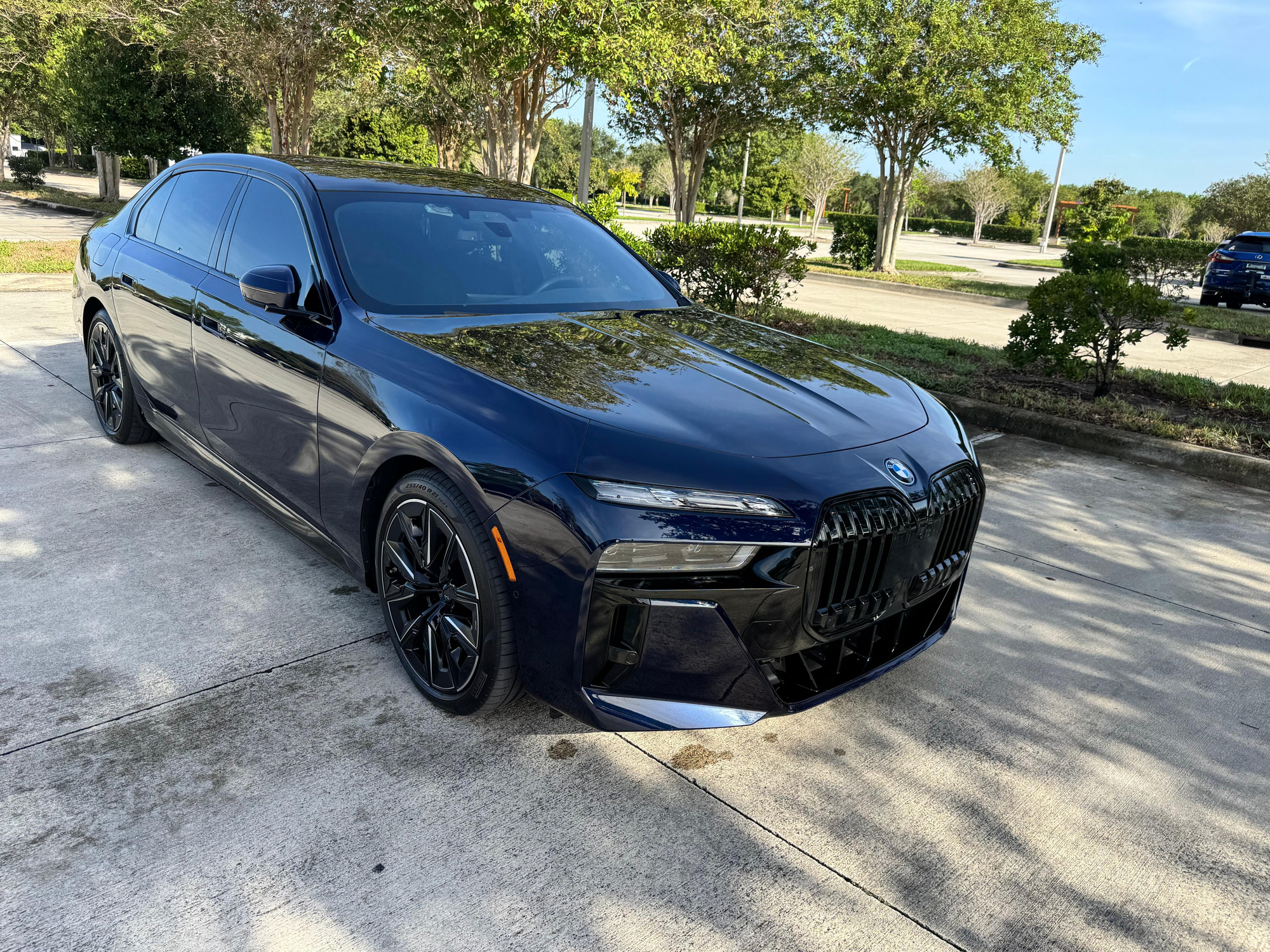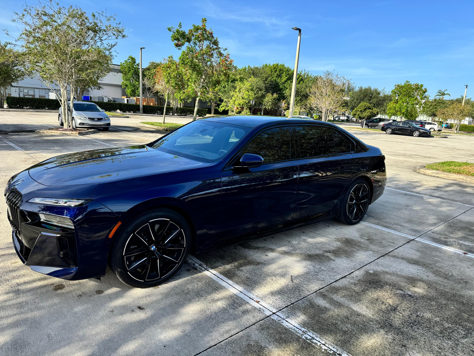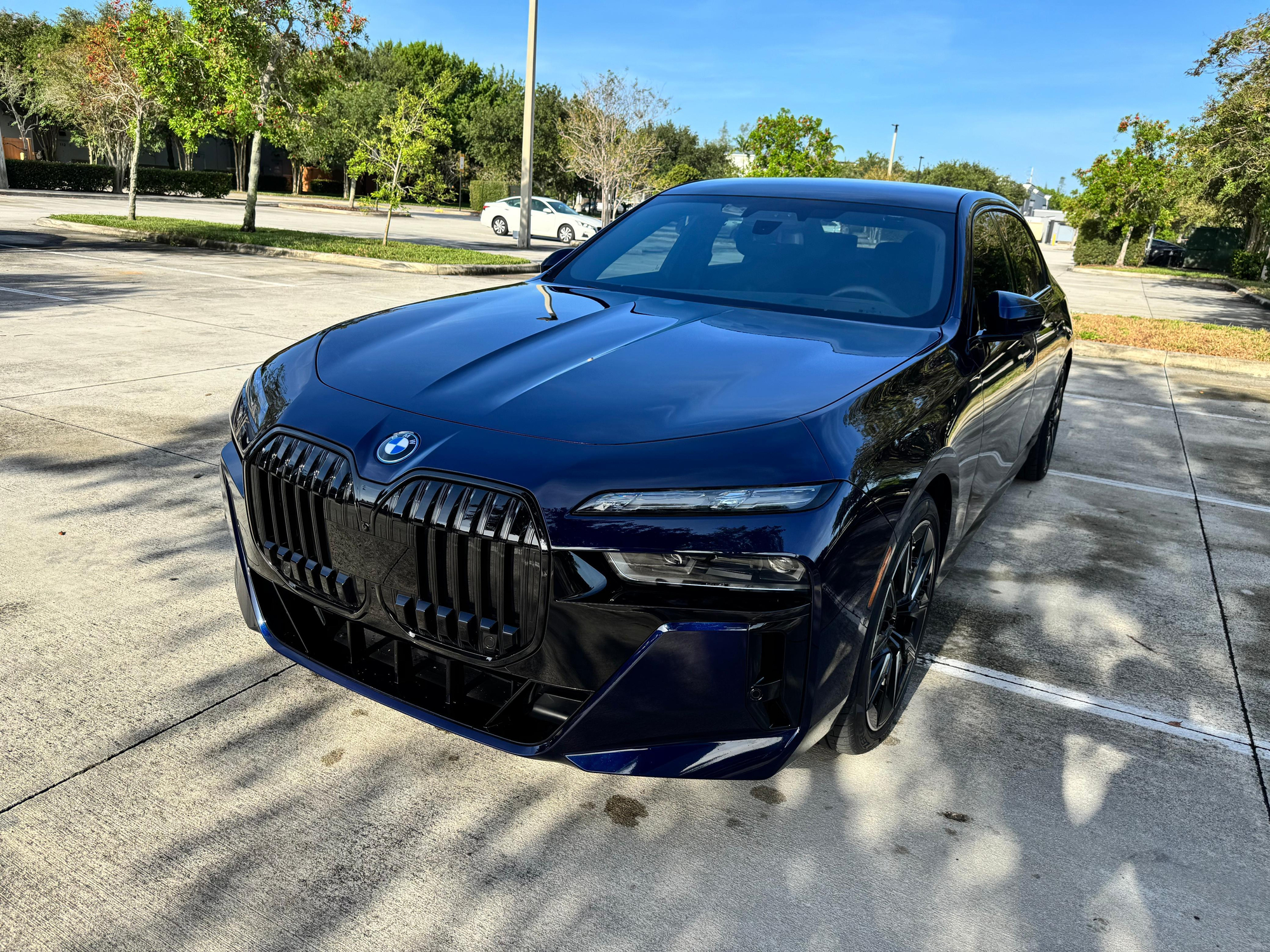 – THIS… is a 2023 BMW i7 xDrive60, finished in Tanzanite Blue II Metallic with a black interior.