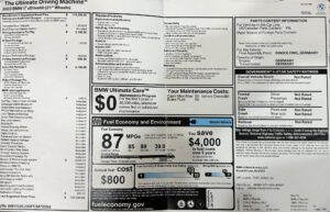 – A window sticker is provided in the photo gallery, and a partial list of notable equipment reported by the seller includes: