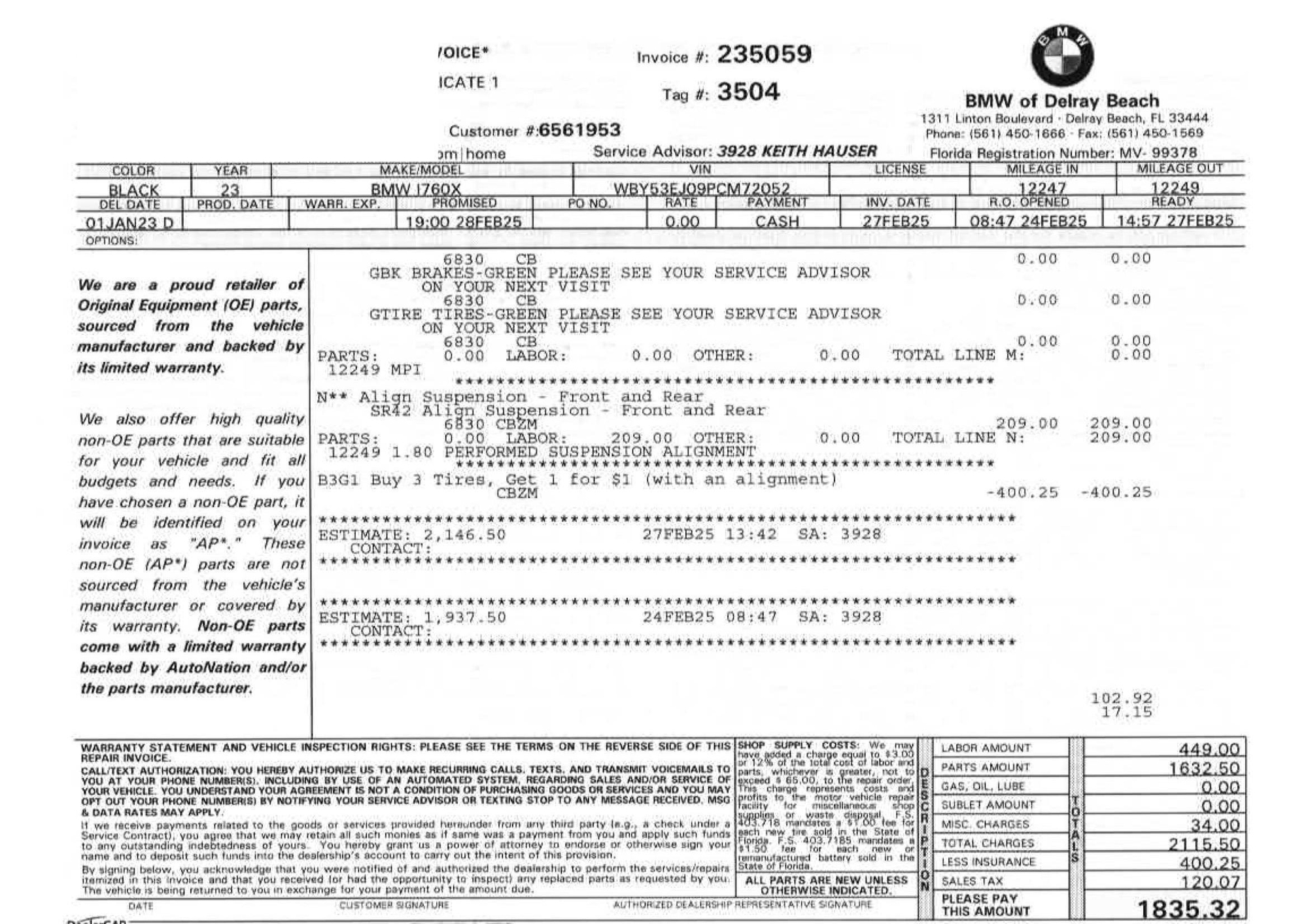 – The seller reports that windows have been tinted, and that ceramic coating has been applied to the exterior of this i7.