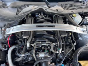– Power comes from a 5.0-liter V8, rated at 480 horsepower and 420 lb-ft of torque. Output is sent to the rear wheels via a 6-speed manual transmission.