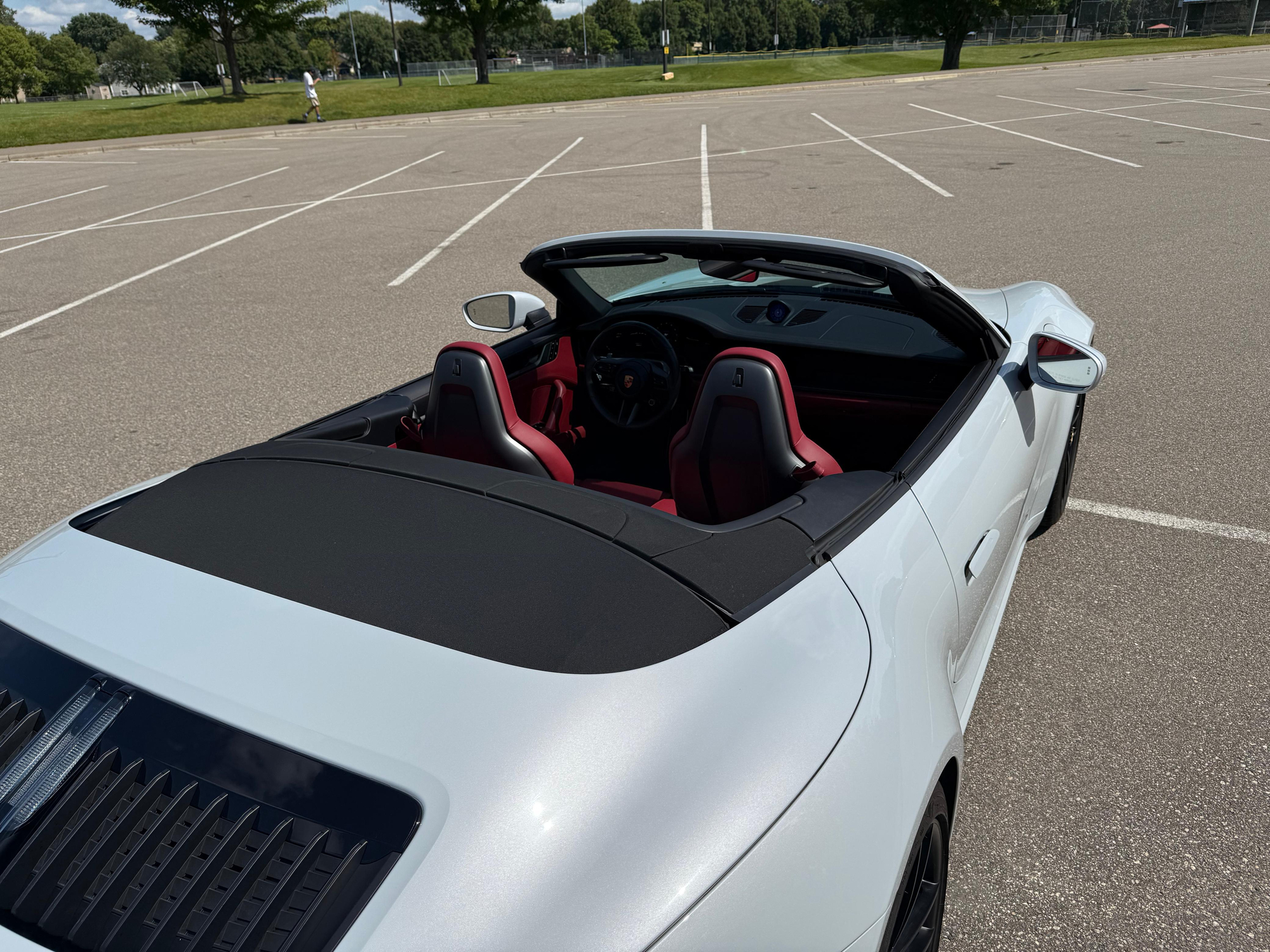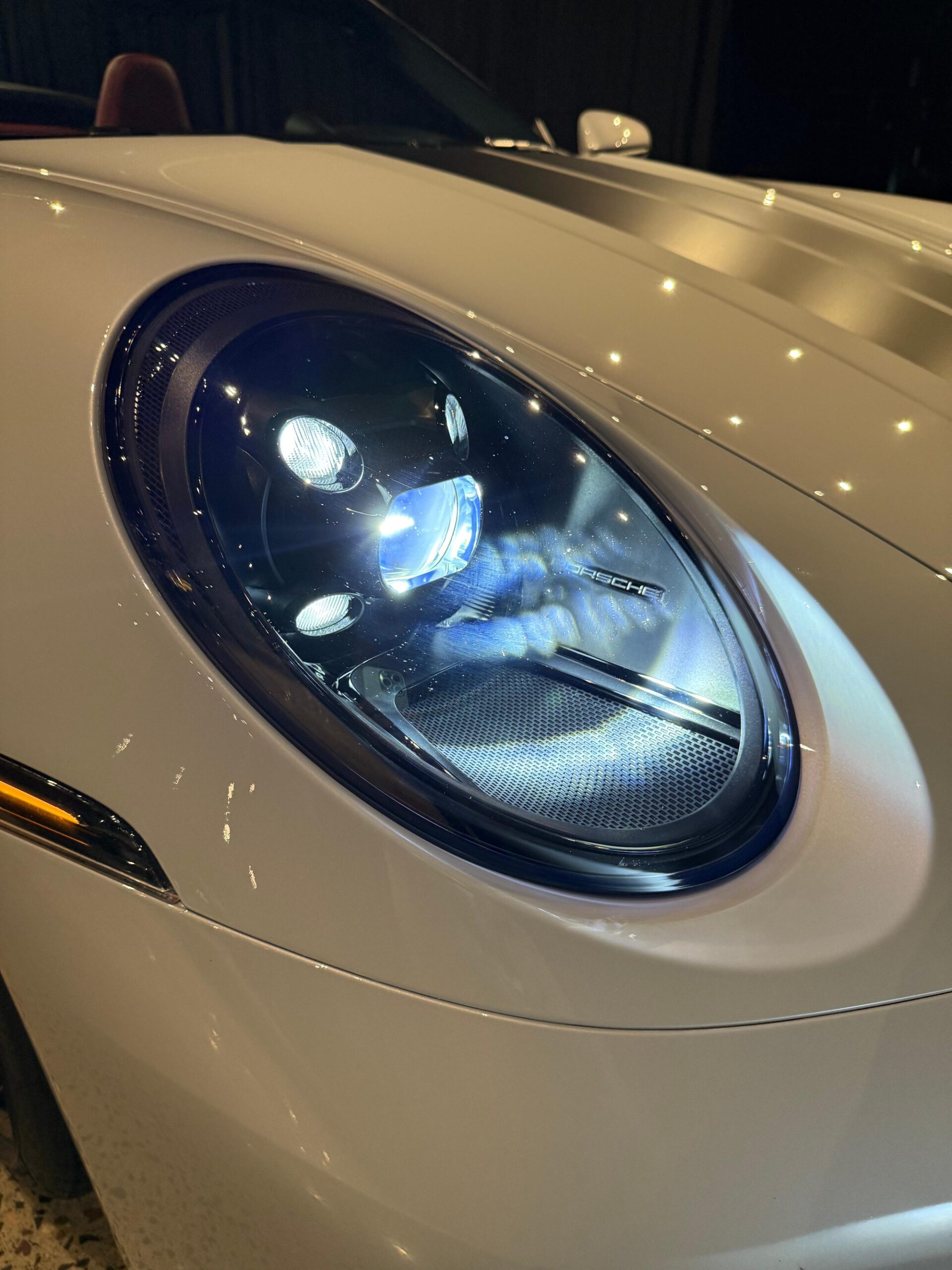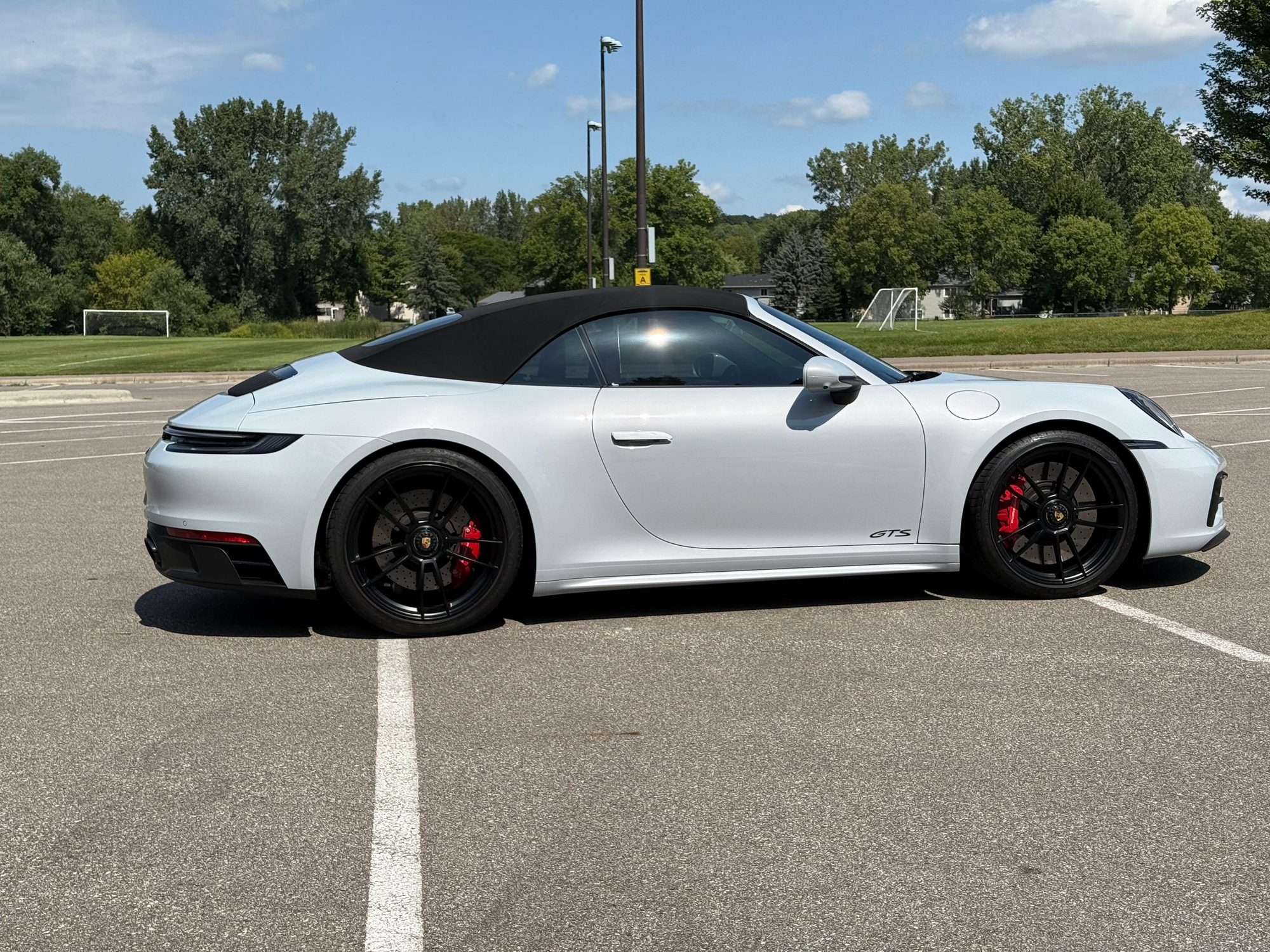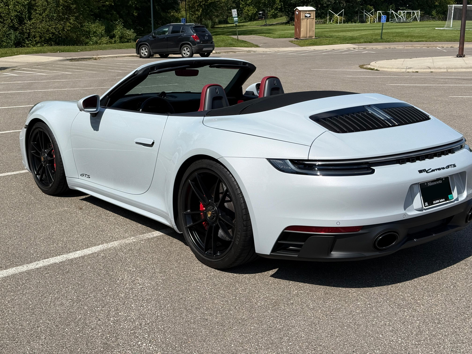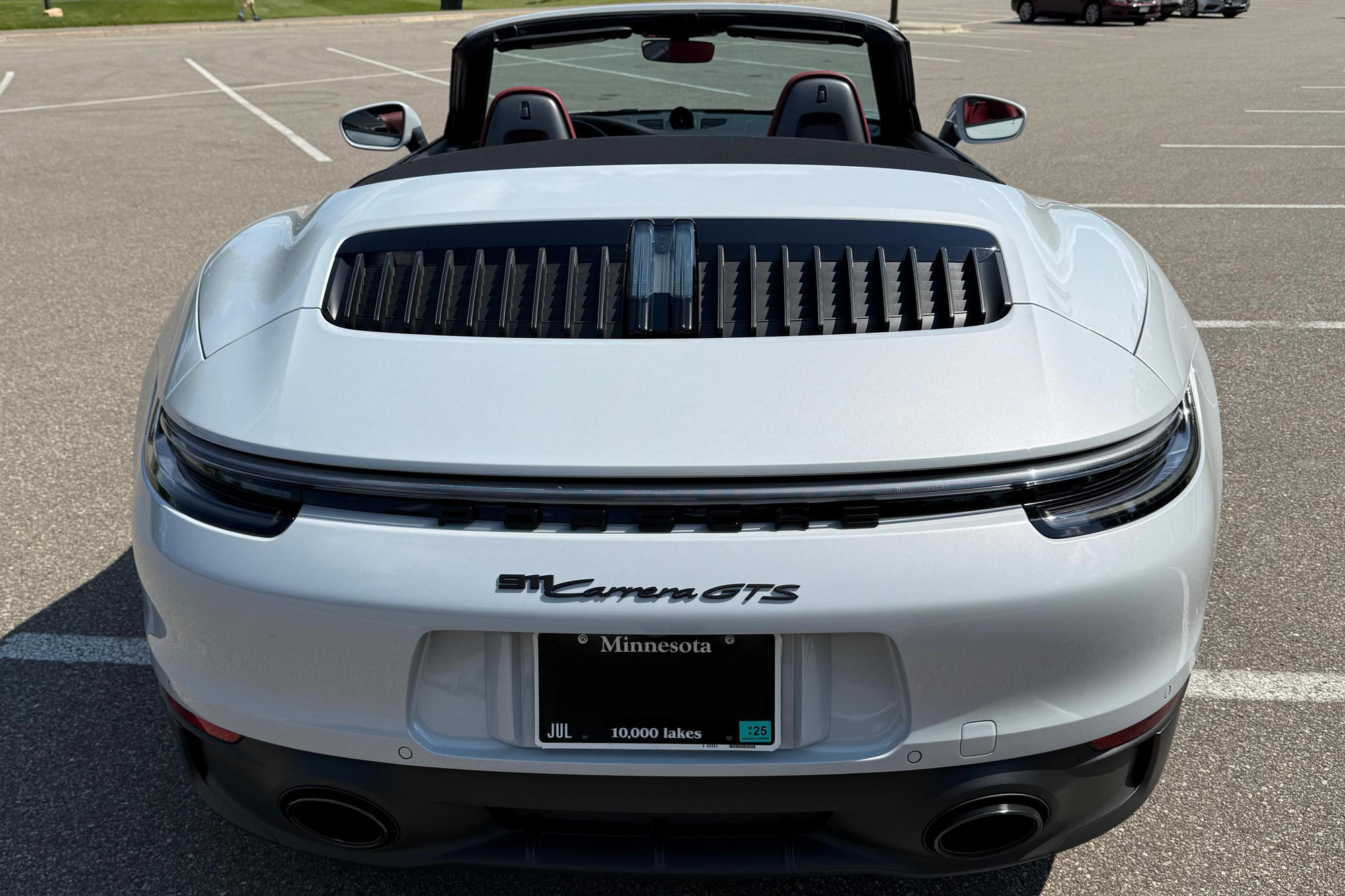 – THIS… is a 2023 Porsche 911 Carrera GTS Cabriolet, finished in Ice Grey Metallic with a black soft top and a Bordeaux Red and black interior.