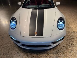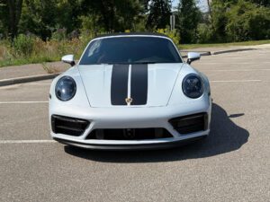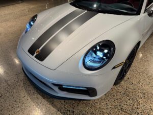– Vinyl stripes on hood (applied over paint protection film)