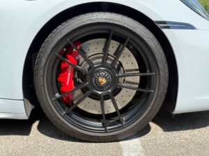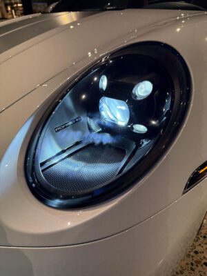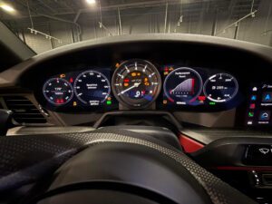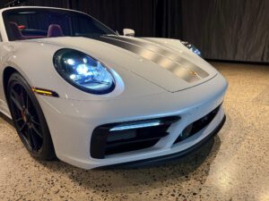 – According to the digital window sticker provided in the gallery, notable factory equipment includes the Premium Package, 20-inch front and 21-inch rear wheels, rear axle steering, heated and ventilated front seats, and a heated GT sport steering wheel. Notable modifications reported by the seller are limited to vinyl stripes on the hood.