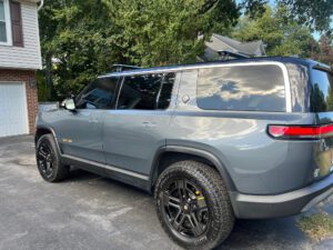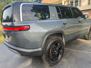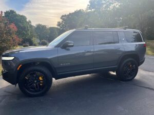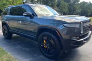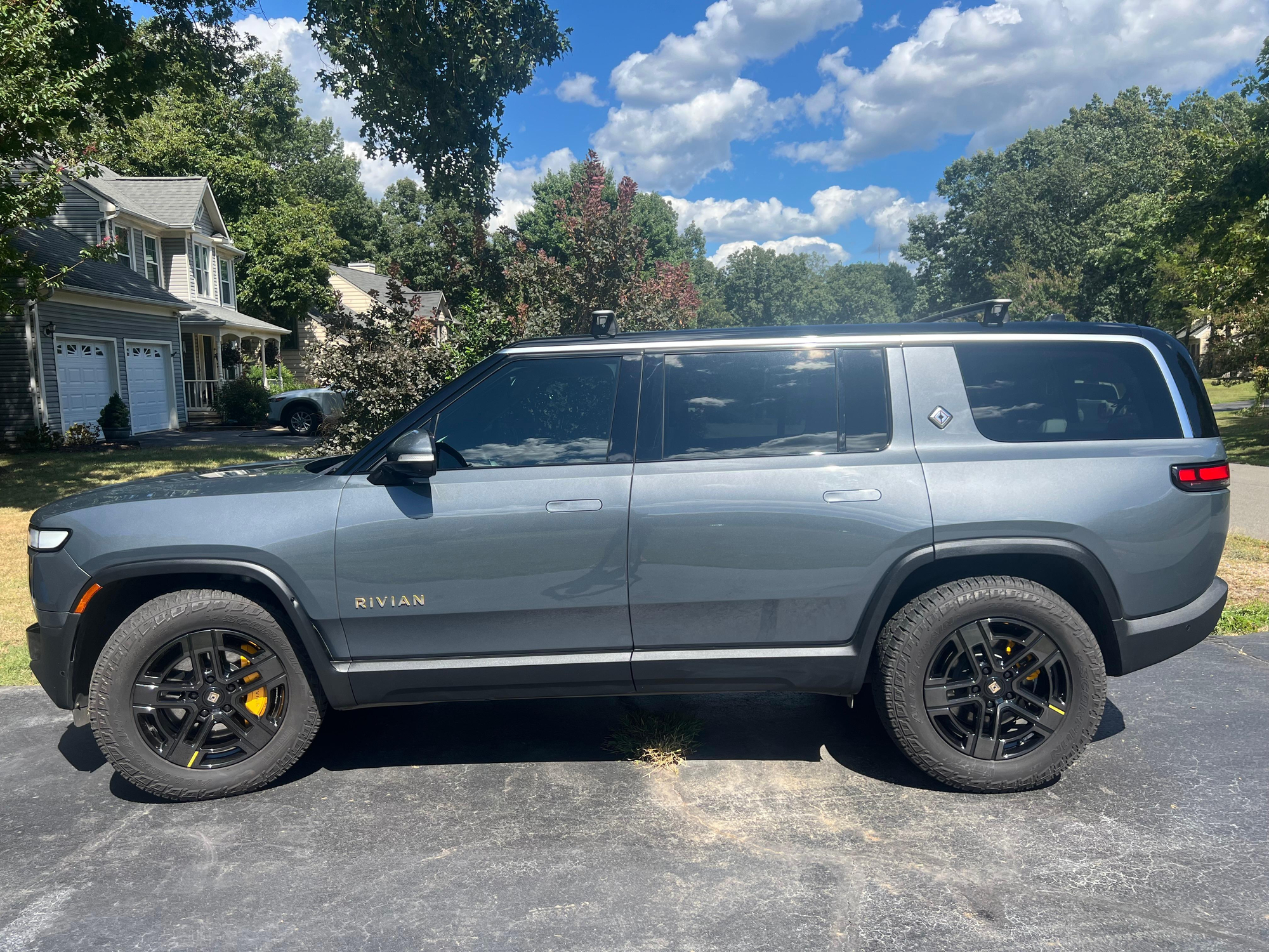 – THIS… is a 2023 Rivian R1S Adventure Edition, finished in El Cap Granite with an Ocean Coast interior.