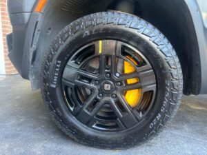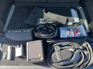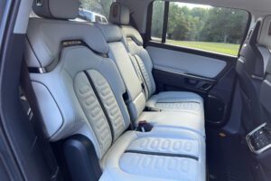 – A partial list of notable equipment reported by the seller includes 20-inch All-Terrain Dark wheels, a large battery pack, an air suspension system, vegan leather upholstery, dark ash wood interior trim, heated, ventilated, and power-adjustable front seats, heated second-row seats, folding third-row seats, and adaptive cruise control. The seller reports no notable modifications.