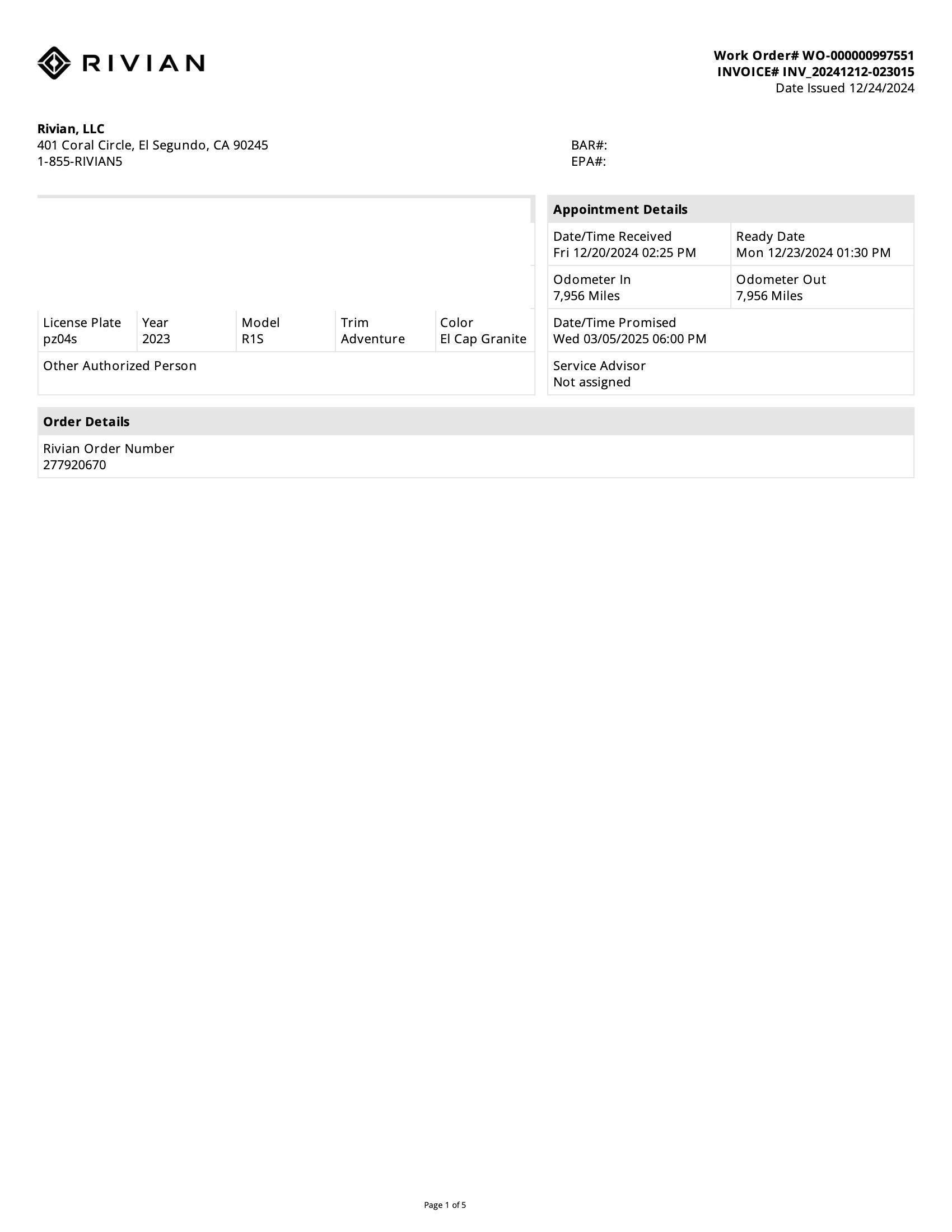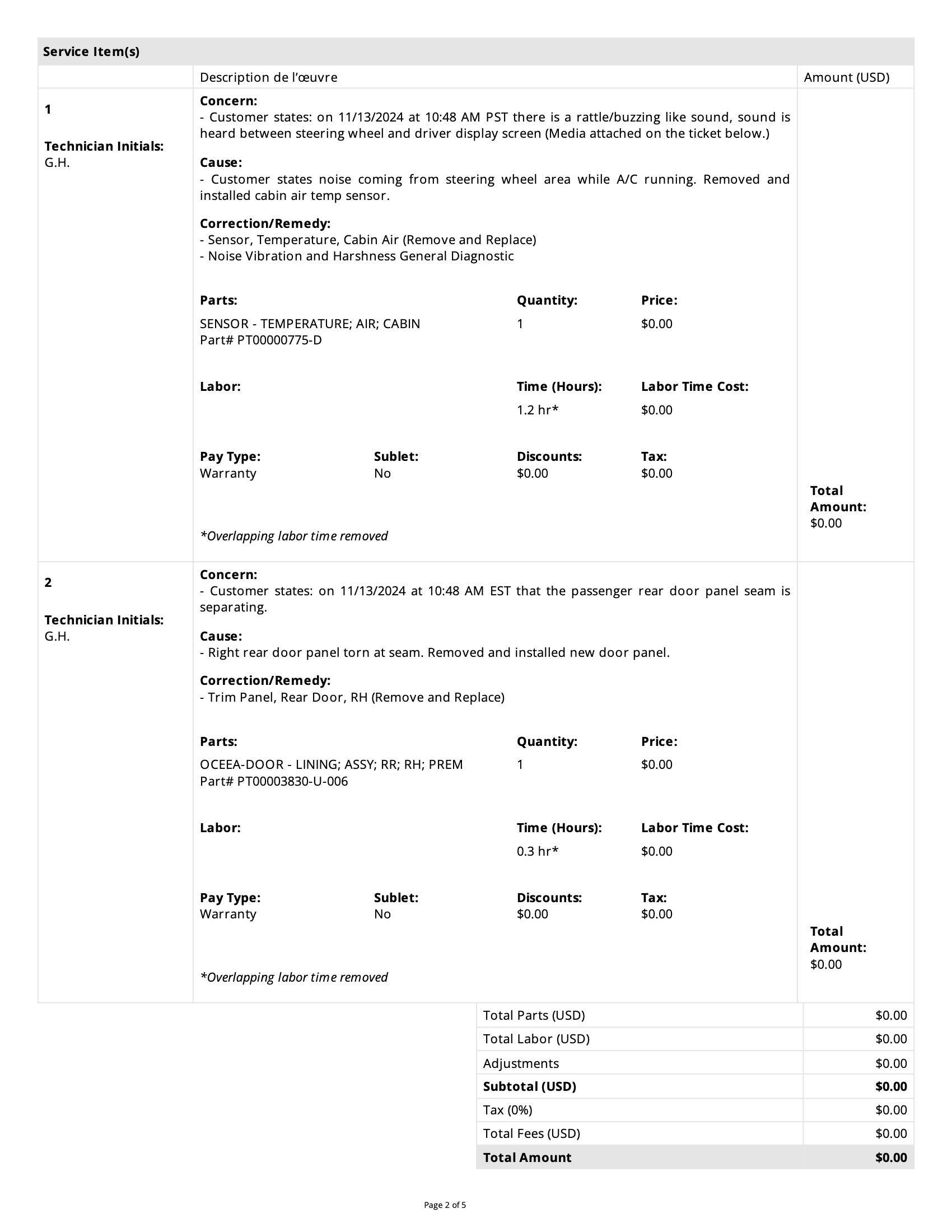 – December 2024 (7,956 miles): Temperature sensor, RH door panel, and cabin air filter replaced