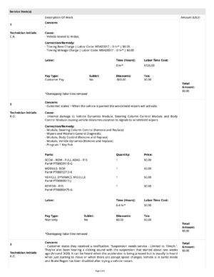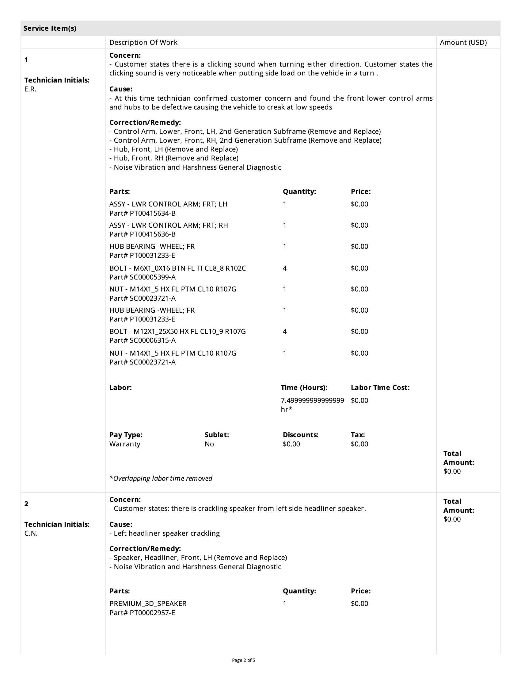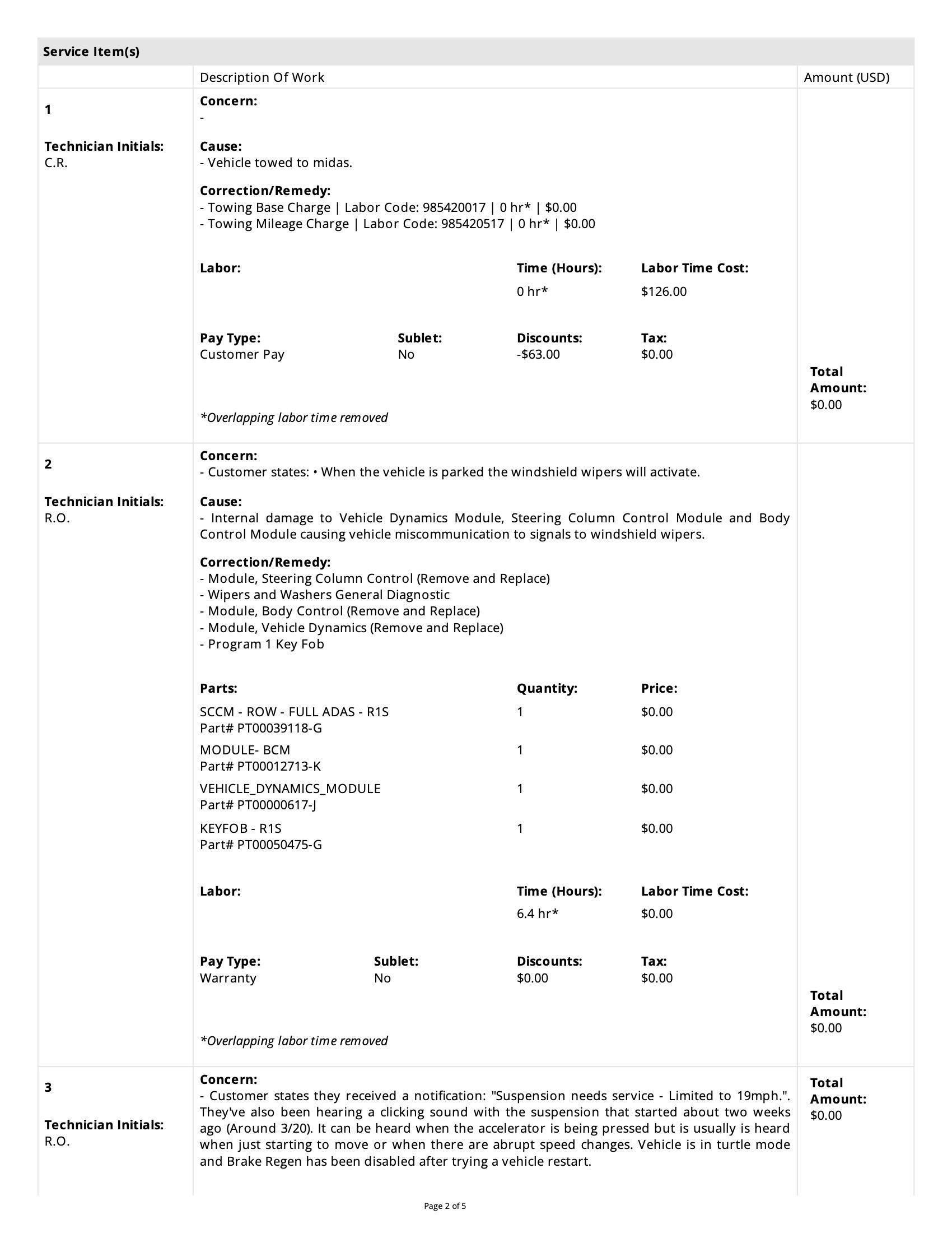 – August 2024 (5,664 miles): Steering column control, body control module, vehicle dynamics module, both front lower control arms, instrument panel harness, and front LH speaker replaced, 1 key programmed