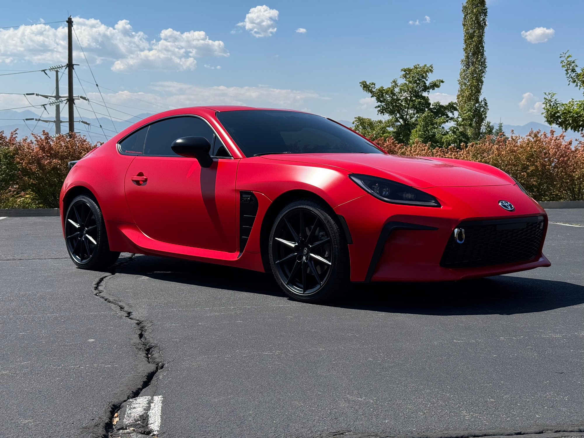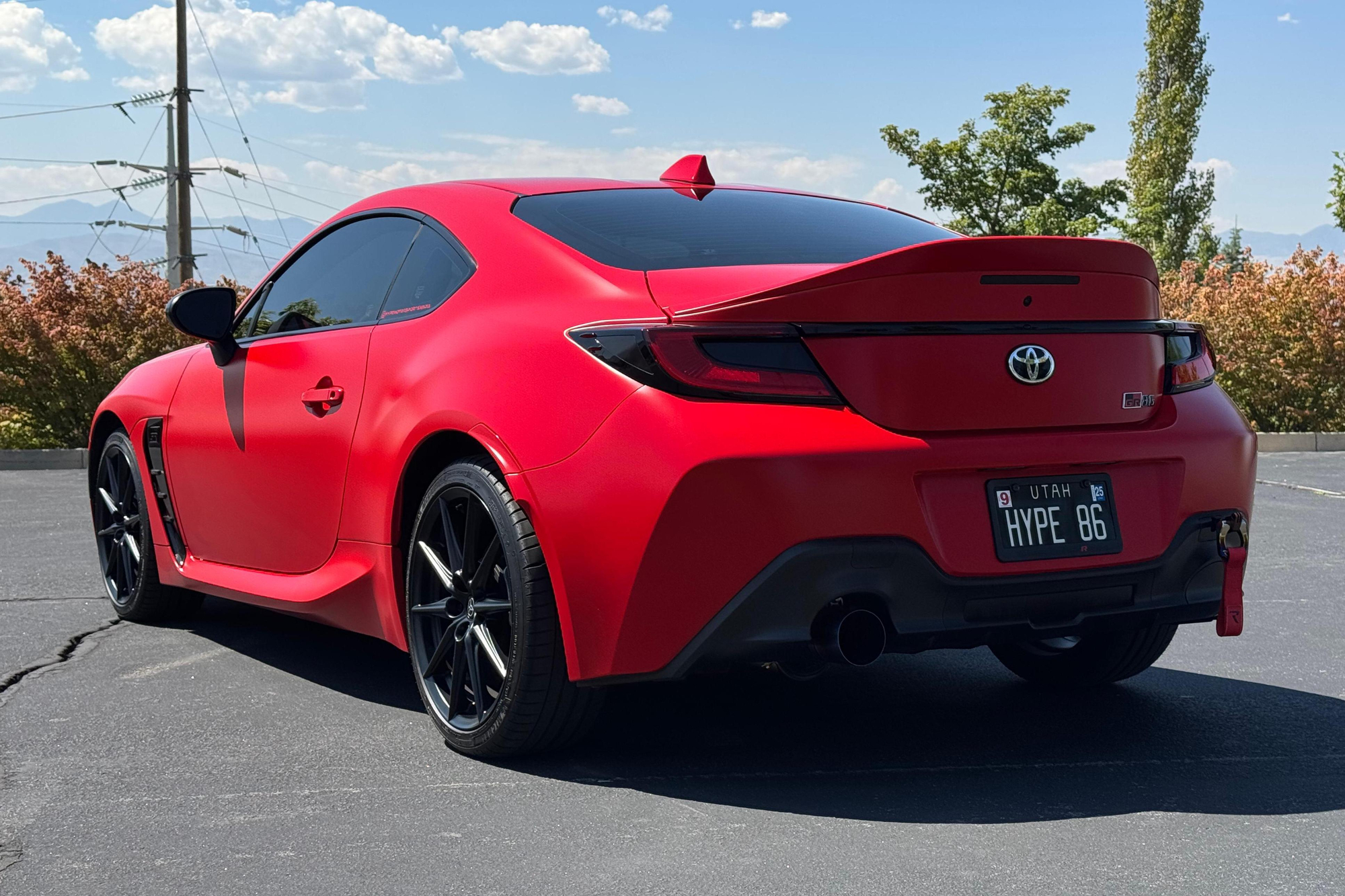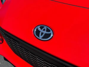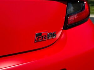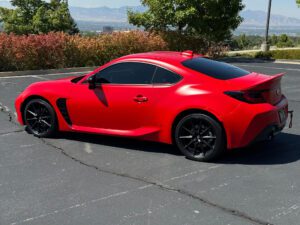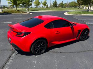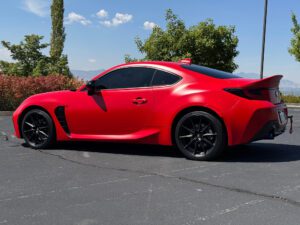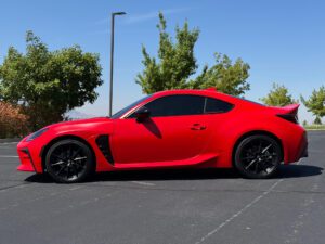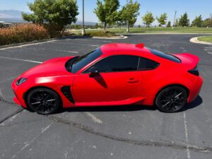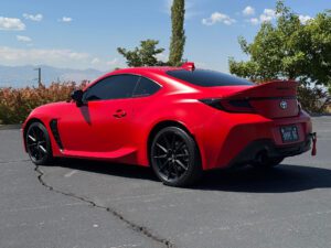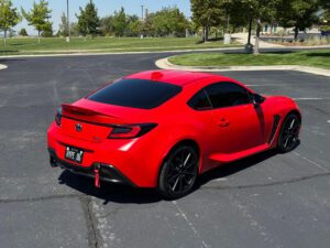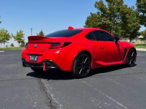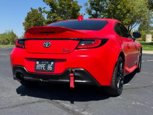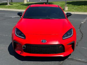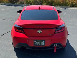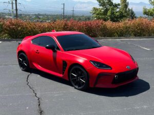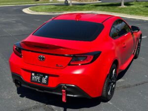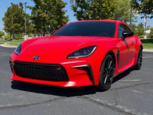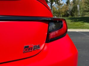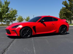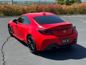 – THIS… is a 2023 Toyota GR86 Premium, finished in Track bRed with a black interior.