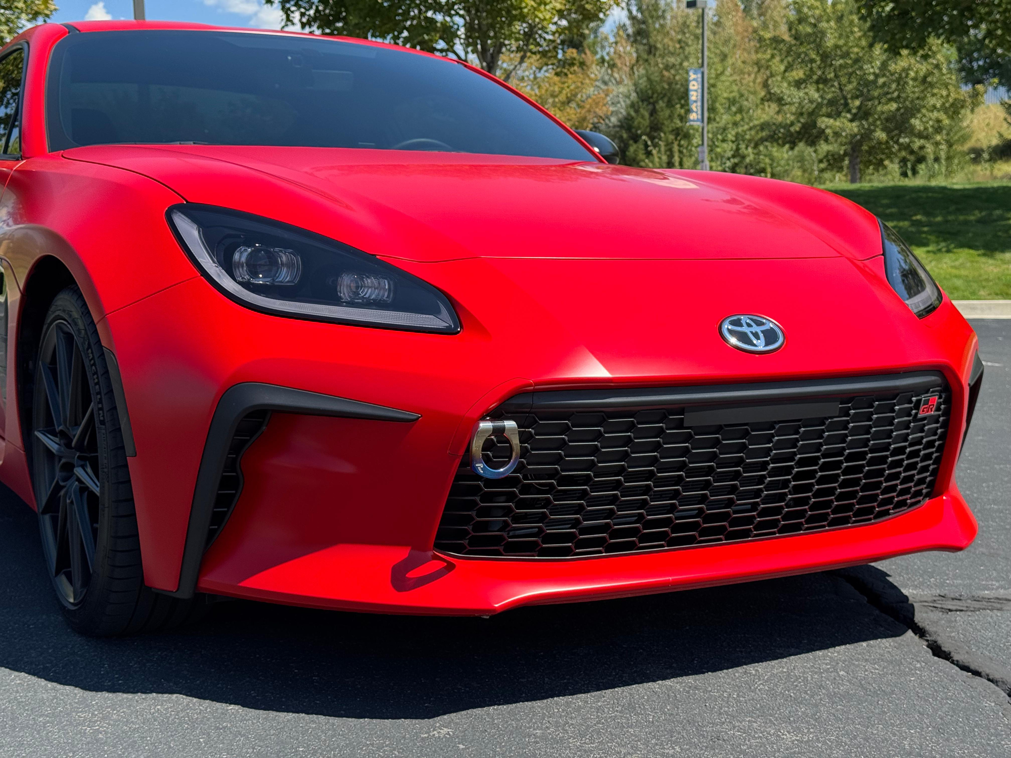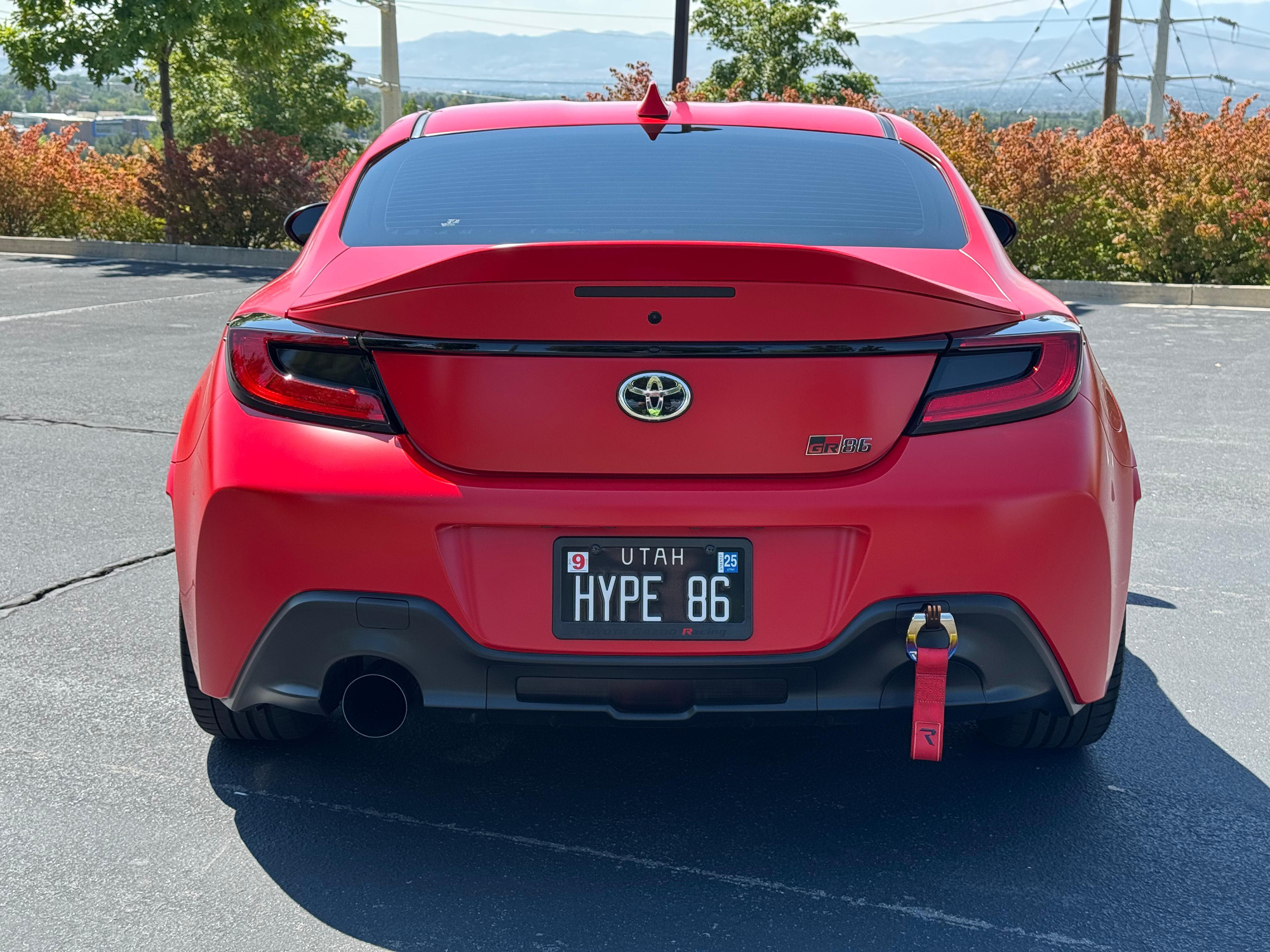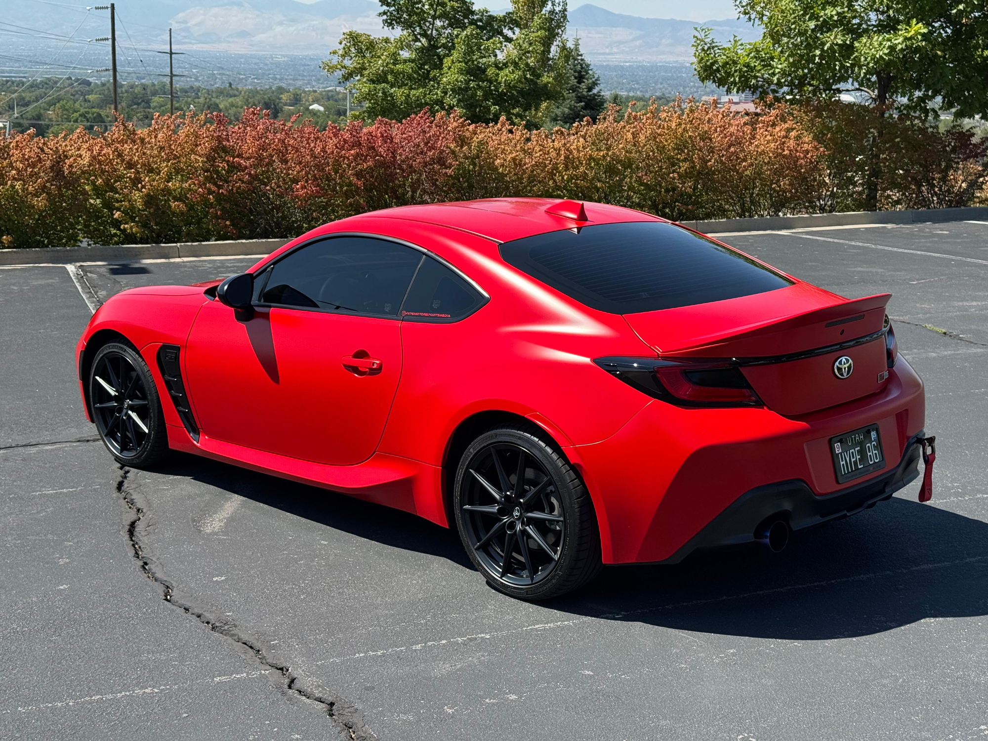 – THIS… is a 2023 Toyota GR86 Premium, finished in Track bRed with a black interior.