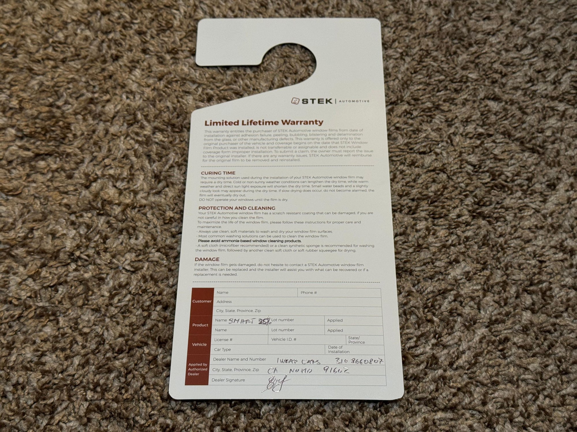 – The seller reports that STEK Smartseries ceramic window tint, STEK DYNOmatte paint protection film, and Ceramic Pro vinyl ceramic coating have been applied to the exterior.