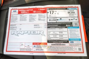 A window sticker is provided in the photo gallery, and a partial list of notable equipment reported by the seller includes: