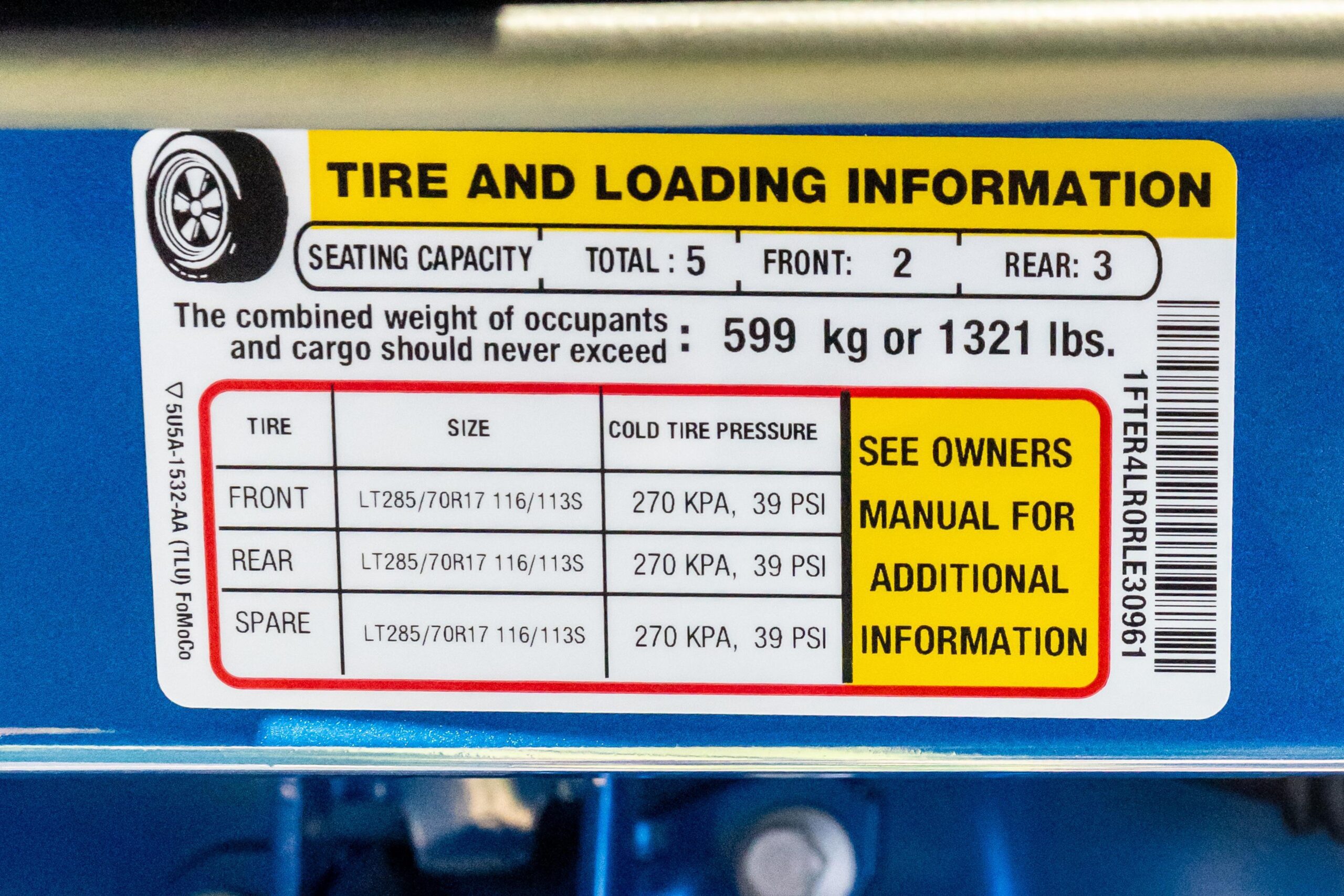 – Equipment Group 800A (3.0L EcoBoost V6 engine, Fox Racing Shocks with Live Valve technology, 12-inch touchscreen, upfitter switches, 120V/400W in-cab and in-bed power outlets, adaptive cruise control, 360-degree camera)